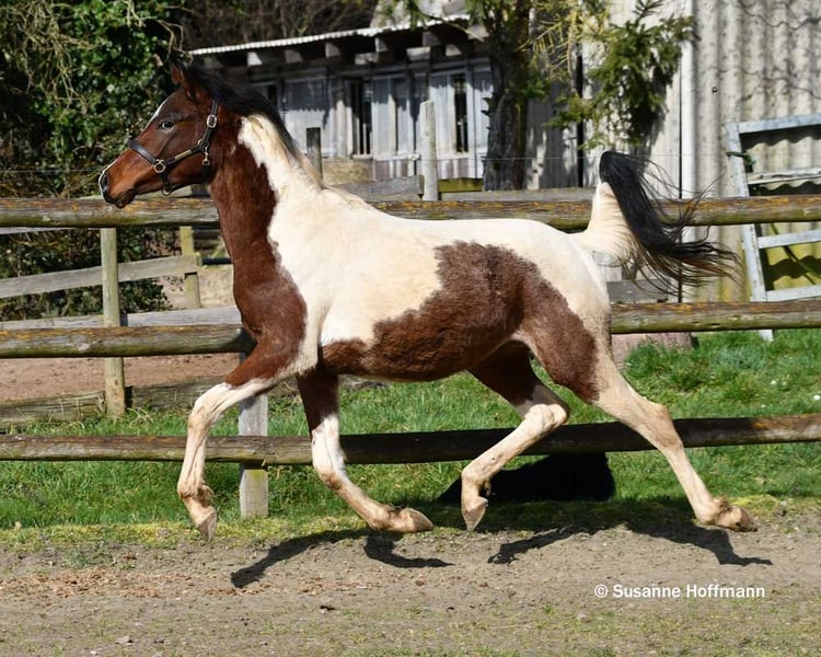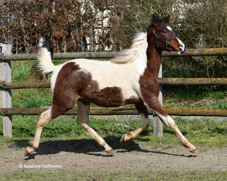 Lysanto ist ein sehr schicker Pintabian Junghengst der als Fohlen prämiert wurde. Er kennt das Fohlen ABC, also den täglichen Umgang, führen, anbinden und natürlich auch den Schmied. Er ist schon jetzt schön groß , wobei auch seine Mutter schon eine wirklich große Stute ist. Er hat tolle Bewegungen und steht korrekt auf den Beinen und hat wunderschöne große Augen. Sein Vater Secret Legacy ist aus USA importiert, in Deutschland gekört und hat seine Hengstleistungsprüfung als Leistungshengst absolviert, dabei könnte er besonders mit seinem sehr guten Charakter und seinen Grundgangarten begeistern. Er ist auf den letzten Fotos zu sehen. Lysanto´s Mutter ist als Prämienstute und Elitestute ausgezeichnet und hat bislang ausschließlich prämierte Nachzucht, sie hat überragende Bewegungen und einen erstklassigen Charakter. Lysanto hat also auf beiden Seiten im Pedigree sehr rittige und leistungsbereite Pferde und ist daher für den Reiter, gerne auch mit sportlichen Ambitionen genauso interessant wie für Züchter.