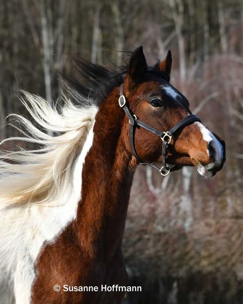 Lysanto est un jeune étalon pintabian très chic qui a été primé en tant que poulain. Il connaît l'ABC du poulain, c'est-à-dire la manipulation quotidienne, la conduite, l'attache et bien sûr aussi le forgeron. Il a déjà une belle taille, sa mère étant déjà une très grande jument. Il a de belles allures, se tient correctement sur ses jambes et a de grands yeux magnifiques. Son père Secret Legacy est importé des Etats-Unis, il a été approuvé en Allemagne et a passé son test de performance en tant qu'étalon performant. Il pourrait être particulièrement enthousiasmant grâce à son très bon caractère et à ses allures de base. On peut le voir sur les dernières photos. La mère de Lysanto est excellente en tant que jument primée et jument d'élite et n'a eu jusqu'à présent qu'une descendance primée, elle a des allures exceptionnelles et un caractère de première classe. Lysanto a donc des deux côtés dans son pedigree des chevaux très montés et prêts à la performance et est donc aussi intéressant pour le cavalier, volontiers avec des ambitions sportives, que pour l'éleveur.