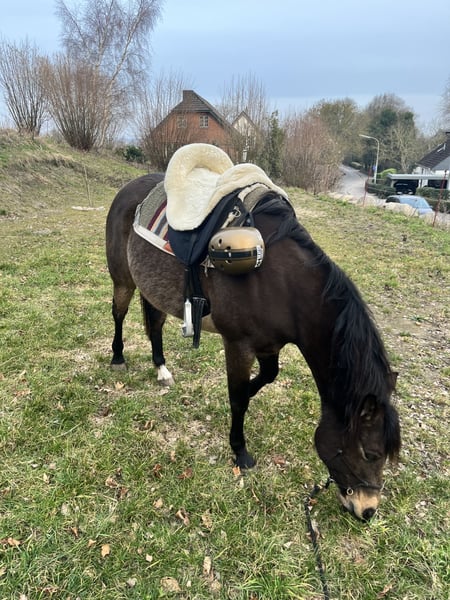 Als alles klopt, bied ik mijn 9-jarige Partbred Arabische merrie in de kleur Buckskin te koop aan. Ze is een zeer fijn paard en ik heb haar tot nu toe alleen bitloos gereden. We hebben veel grondwerk en Natural Horsemanship gedaan. Verder zijn we voornamelijk recreatief in het terrein geweest. Ik heb haar ook af en toe ingezet voor therapeutisch werk. Ze kan diep ontspannen zijn, maar is ook typisch Arabisch temperamentvol. En ze heeft ook de "Turbo-gang", wat betekent dat ze erg snel is en graag beweegt. Bij mij stond ze altijd in een open stal en dat zou ik ook voor haar willen. Ze heeft echter een veilige plek in een droge schuilplaats nodig, omdat ze de neiging heeft om ondergeschikt te zijn en niet graag in de regen staat. Alternatief zou een paddock-box 's nachts en weide overdag ook goed voor haar zijn. Ze loopt zonder ijzers (voor buitenritten trek ik haar hoefschoenen aan) en laat haar hoeven zonder problemen behandelen. Ze is regelmatig gevaccineerd, ontwormd en haar tanden worden jaarlijks gedaan. Eén tot twee keer per jaar krijgt ze een osteopathische behandeling. Aangezien ze de neiging heeft een hoge spierspanning te hebben, geef ik haar af en toe kleine massages tijdens het poetsen. Ook al kan ze behoorlijk opgewonden raken, is ze op elk moment aan de lange lijn super goed te houden. Bij mij stond ze laatst in een merriesgroep. Ze kent echter ook gemengde groepen. Ze is geen gewichtdrager. Ik zou zeggen dat ze tot maximaal 70 kg goed kan dragen. Ik geef haar alleen in de beste handen - het is geen noodverkoop. Ze kan waarschijnlijk ook veel verschillende kleurgenen doorgeven. Op de laatste foto is haar vader, Paintabian "Shicco Ibn Shai". Ik heb een speciaal aangepaste Deuber Jerez in maat S2 (Bückeburger model) voor haar, die apart kan worden aangeschaft.