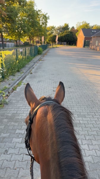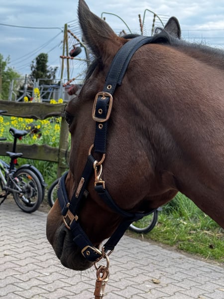 Für meine Stute Merry suche ich eine zuverlässige Reit- oder Pflegebeteiligung. Merry ist 25 Jahre alt und für ihr Alter noch sehr fit und regelmäßig reitbar. Mit Merry ist vielseitige Arbeit möglich, Springen ist jedoch ausgeschlossen. Aufgrund ihres schmalen Körperbaus und ihres langen Rückens ist sie kein Gewichtsträger. Für eine Reitbeteiligung sollte das Reitergewicht daher idealerweise unter 75 kg liegen. Im Umgang ist Merry lieb und gut händelbar, braucht jedoch besonders am Anfang eine klare und konsequente Führung, damit sie ihren Menschen ernst nimmt. Sie buckelt und steigt nicht, kann in bestimmten Situationen aber etwas unruhig werden. Durch ihr Temperament ist sie nicht für Anfänger geeignet, entsprechende Reiterfahrung sollte vorhanden sein. Sobald man sich ein wenig kennen gelernt hat, kann man gerne auch ausreiten gehen in der Halle mit dir arbeiten oder sonstiges machen. Sie macht eigentlich alles mit. Alternativ ist auch eine reine Pflegebeteiligung möglich. Wer nicht reiten möchte, kann Merry gerne putzen, spazieren gehen oder einfach Zeit mit ihr verbringen – hierbei spielt das Gewicht selbstverständlich keine Rolle. Wir stehen in Vollpension und haben folgende Sachen zur Verfügung: -Halle zum Reiten -Bewegungshalle -Platz -Täglicher Auslauf im Winter so wie im Sommer -Schönes Ausreitgelände Bei Interesse freue ich mich über eine Nachricht und ein erstes Kennenlernen.