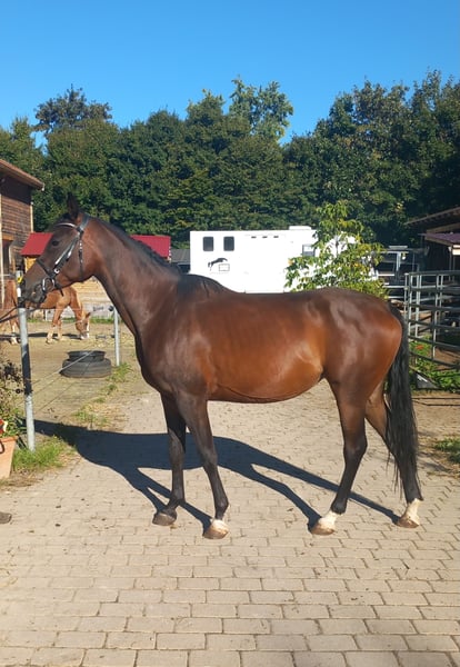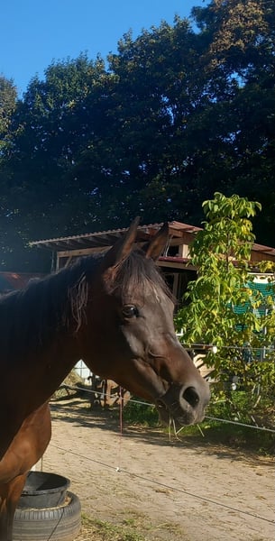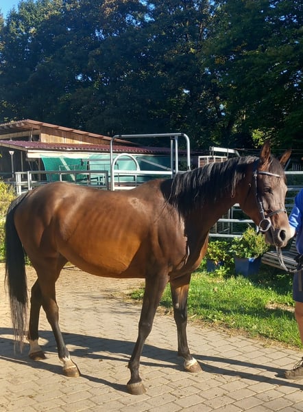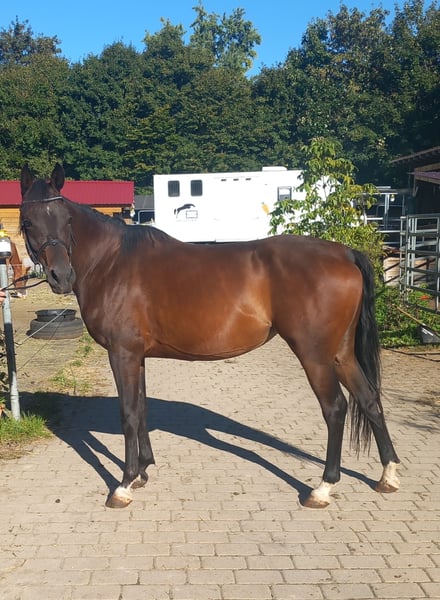 Da wir ihr zeitlich nicht gerecht werden können, verkaufen wir unsere 5 jährige Shagya/Araberstute. Sanayah ist eine ca 1,49cm große, sehr temperamentvolle und menschenbezogene Stute. Sie wurde bei uns geboren und ist auch hier aufgewachsen, ist schmiedfromm, kennt Führanlage und lässt sich verladen. Ihre Mutter ist unserebeim ZSAA leistungsgeprüfte Araberstute, die erfolgreich Distanzen bis 100 km läuft und ach Dressur und Springturniere bis KLasse A. Vater ist der inzwischen in Babolna beheimatete gekörte, schwarze Shagyahengst Shahim des Charmes. Sie ist derzeit in Profiberitt bei einer 3* Vielseitigkeitsreiterin und zeigt sich dort sehr lernwillig und leistungsbereit. Wir suchen für sie einen Platz, an dem sie gefordert und gefördert wird mit möglichst viel Auslauf. Bei uns wohnt sie im Offenstall, kennt durch die Ausbildung jetzt auch Box/Paddock. Sanayah ist noch in alle Richtungen offen, sei es als Distanz/Wanderreitpferd oder auch im klassischen Reitsport, aber kein Anfängerpferd.