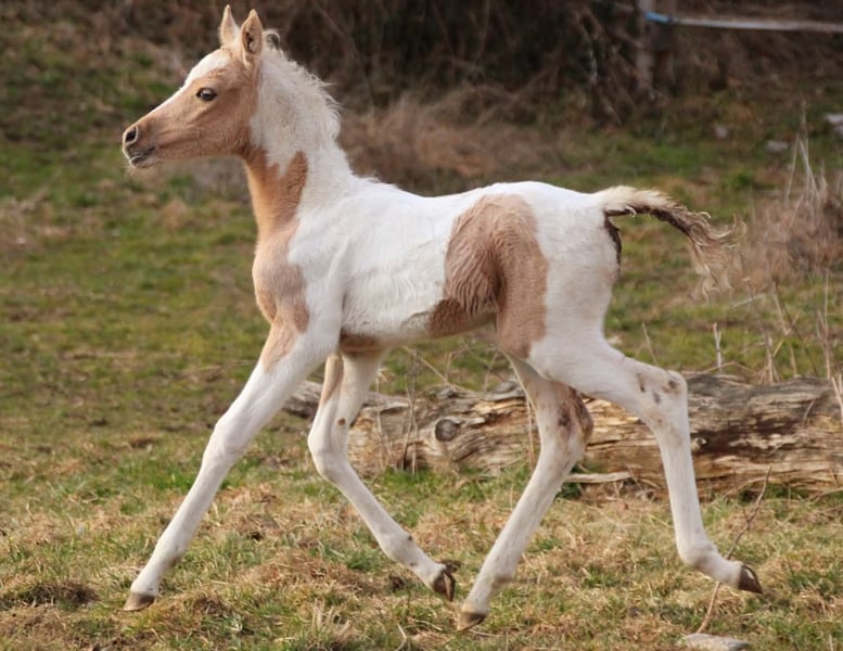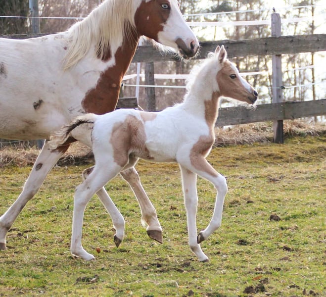 CWH Seraphina ist eine sehr schön gezeichnete Palomino Tovero ( trägt das seltene geb overo und Tobiano) Stute mit über 95% AV die ihren Namen alle Ehre macht ! Elegant und leichtfüßig schwebt sie über die Wiesen ! Sie wird regelmäßig Entwurmt und wächst gemeinsam mit anderen Fohlen auf großen Wiesen auf! Teilzahlung möglich ✨