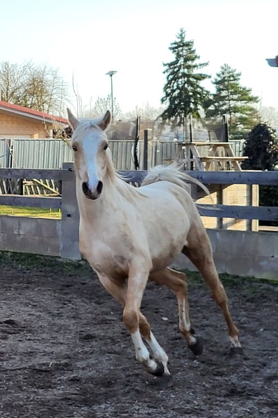 **Verkaufsanzeige: Arabisches Partbred – Palomino-Wallach, geb. 2024, 154 cm** Zum Verkauf steht ein vielversprechender arabisches Partbred-Wallach, geboren im April 2024 aus einer ägyptischen Vollblutstute und einem Partbred Hengst. Malik ist in einer gemischten Herde in Offenstall- bzw. im Sommer Weidehaltung aufgewachsen. Er gibt brav Hufe, lässt sich gerne ausgiebig putzen, ist altersgemäs erzogen, gesund, regelmäßig entwurmt und frei von bekannten Krankheiten. Wir wünschen uns für ihn ein zu Hause mit Weide- und Herdenhaltung. Platz vor Preis. Bei Interesse gern mehr per Telefon.