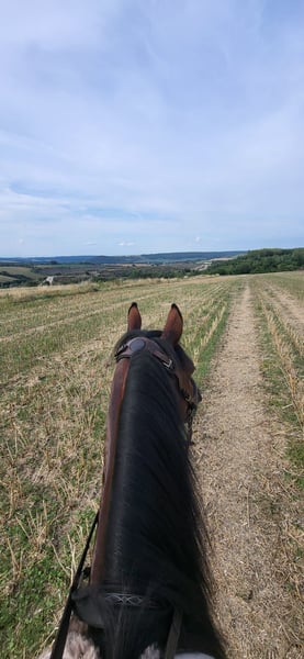 ⚜️ Heartfelt Favorite ⚜️ "Theo" - Pinto-Arabian / Reitpony cross - Born: July 3, 2020 - Height: 15.3 hh - Mother: Louise – Reitpony - Father: Taza Bajan (performance stallion) – Pinto-Arabian - Three-month foundational Western riding training with a professional, MJ Performance Horses / Michael Jahnke (January 2024 to early April 2024) - Since June 2025, back in professional training with Belle Air Quarter Horses Theo grew up with his breeder until he was 2.5 years old, in a very family-like environment and under excellent conditions. He then came to his current owner, who had fallen in love with him as a foal. In December 2022, he was gelded. Before starting his riding training, his owner often took him on solo rides in the countryside. From the beginning, both his breeder and owner have always cared for and nurtured him carefully. Theo is a handsome, sturdy cuddle-bear (but not a weight carrier!). He is very easy to handle overall, including farrier (four-time shod), veterinarian, and loading. He is very social with other horses, always friendly and open. Theo came to us for further training because, due to lack of time, he enjoyed about five months of pasture life (but was still handled and fed daily). He is very eager to learn and enjoys work and variety. However, during training, we noticed that his progress was slow, and he occasionally showed "problems" with carrying himself and working over his back. Therefore, we had X-rays taken, which unfortunately revealed that his dorsal spinous processes are closely aligned. To rule out any other issues, we also have X-ray images of his hocks. Since then, we have been training Theo more specifically, focusing on strengthening his back from the ground as well as from above. He is well-behaved under saddle and shows no bad habits. After his basic training, he mainly went on solo rides with his owner in the countryside. Due to his condition, it is very important for us to find someone who is experienced, committed, and willing to continue his development. Only then can long-term joy with him be guaranteed. We are looking for someone with experience and enthusiasm for groundwork, who is also interested in further education or attending clinics. Once Theo has built trust and confidence, he is an absolute buddy and heart horse, always greeting you happily when you enter the stable or pasture. So far, he has only known 24/7 hay, kept in a box at night and on pasture during the day, and only with geldings (not tested with mares). We could also imagine him thriving in a small, well-managed open stall with a consistent herd. His owner is only offering him for sale because she cannot provide the training he needs and cannot support him as much as he requires. It is very difficult for her, which is why we are searching for the absolute 5-star home for him—one with a family environment where he will be loved, cared for, and nurtured just as he has been so far. Video: https://youtube.com/shorts/I7FU4-czJ4w?si=eZ1-XxykAwGo99B_ We are happy to arrange a trial ride and charge €40 for it.