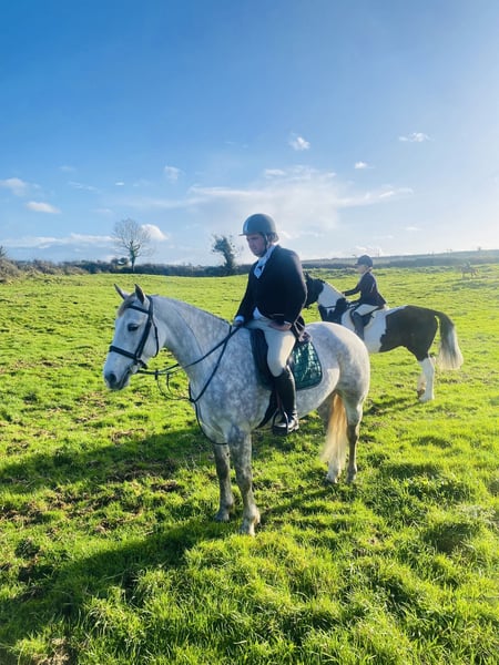 Roisinview Lady 4yo RID mare 15,3hh (160cm) 🍀 Coilldarach Scirocco x Hillviewfarm Superstar Beautiful, quality young mare with a fantastic temperament. Professionally educated and doing the basics nicely. Moves through her paces easily, schooled over poles and x country, hacks out alone and in company. Good in traffic. Has hunted with the Sligo Harriers and jumped walls, logs, ditches and hedges. Lovely sensible lady that tries her best and is very positive. Will make a fabulous hunter and allrounder. Easy to ride and manage in all ways. Has been ridden successfully by a few different riders here. Price €6,000 Located in Sligo, Ireland. Regular professional transport available if required. No known injuries, issues or vices. Open to vetting / on site trials. For further information or videos please contact Edward on 00353871412129. All enquiries welcome.