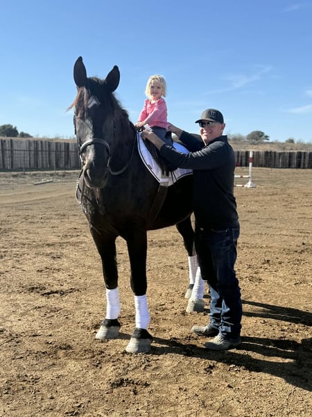 ONLINE-AUKTION Gebote unter www.PlatinumEquineAuction.com Startgebot 3.500 USD Auktion endet am 28. Dezember 2025 Benötigen Sie ein neues Sattel? Schauen Sie auf unserer Website oder Facebook-Seite bei White Rock Saddles vorbei. Coal ist ein beeindruckender 5-jähriger Percheron-Geländewagen-Wallach mit einer Schulterhöhe von 17 Händen. Wo soll man anfangen… Coal ist ein äußerst talentierter, athletischer, williger, freundlicher und sanfter Wallach, der wirklich alles kann – und das stets mit einem „Ja, Ma’am“-Einstellung. Er springt, zieht sowohl einzeln als auch paarweise, unternimmt Geländeritte und ist für alle Reiter geeignet. Im Viereck ist Coal einer der weichsten Bewegungen, die ich je geritten habe. Er zeigt schöne Übergänge und kann mit einem einzigen Kuss antraben. Er ist bereits über Hindernisse gearbeitet und liebt es absolut! Er ist einer der natürlichsten Springpferde, die ich je ausgebildet habe. Im Gelände ist Coal fröhlich und unerschrocken und geht überall hin, wo man ihn hinführt. Hoch, runter, über oder durch – er macht es ohne Zögern. An der Spitze des Feldes? Ja, Ma’am. Hinterher? Ja, Ma’am. Wir haben noch nie eine negative Einstellung oder ein „Nein“ von Coal erlebt. Niemals! Am Boden zeigt Coal vorbildliche Manieren. Er ist freundlich, leicht zu fangen, liebt Aufmerksamkeit und genießt es, gestreichelt zu werden. Coal ist sowohl zum Ziehen einzeln als auch im Doppel ausgebildet. Er ist das Leitpferd zusammen mit seinem Halbbruder Smoke, der ebenfalls zum Verkauf steht, falls Sie sie als Team haben möchten. Coal ist gesund, gerade und hat saubere Beine. Er ist auf dem neuesten Stand, beim Hufschmied zuverlässig, weidet mit anderen Pferden zusammen und bleibt auch alleine artig im Stall. Bei Fragen rufen Sie bitte Chanel von Holland Horse Company unter 559-978-6320 an oder schreiben Sie eine Nachricht. Standort: Jacksboro, TX.