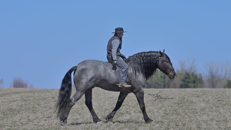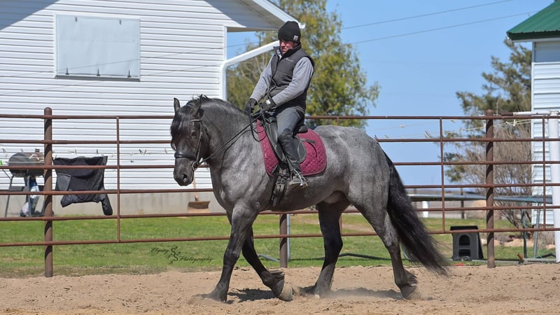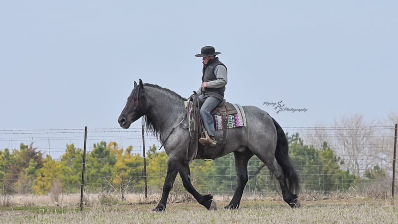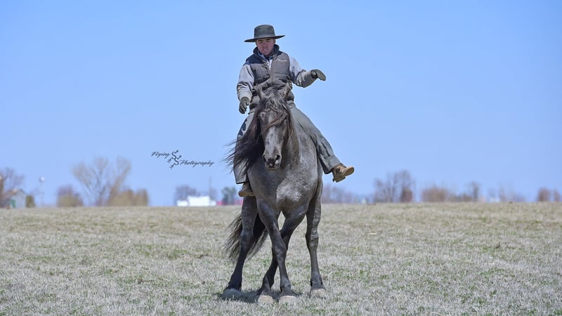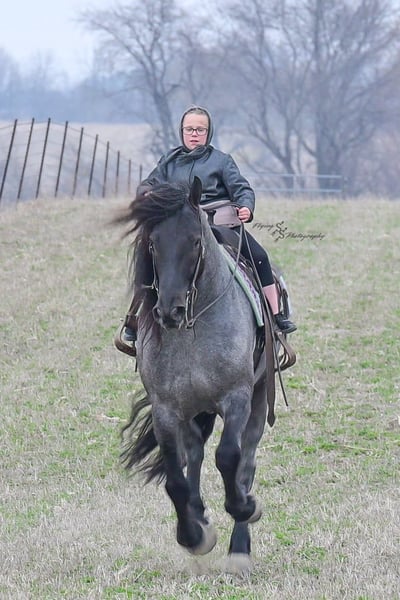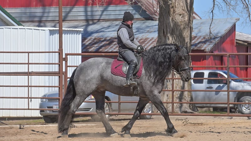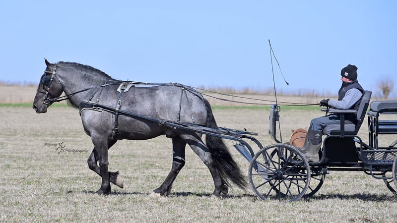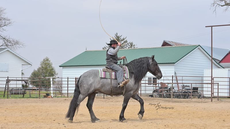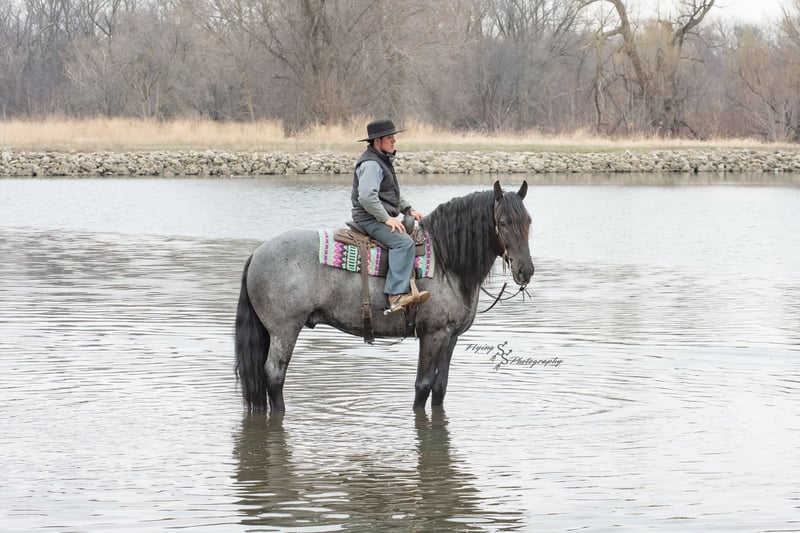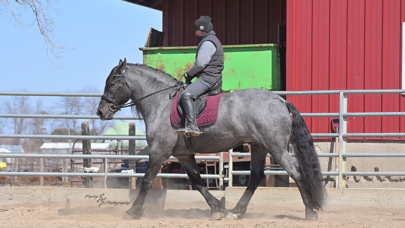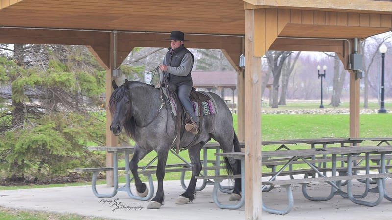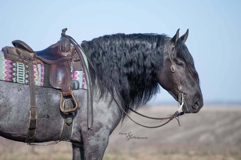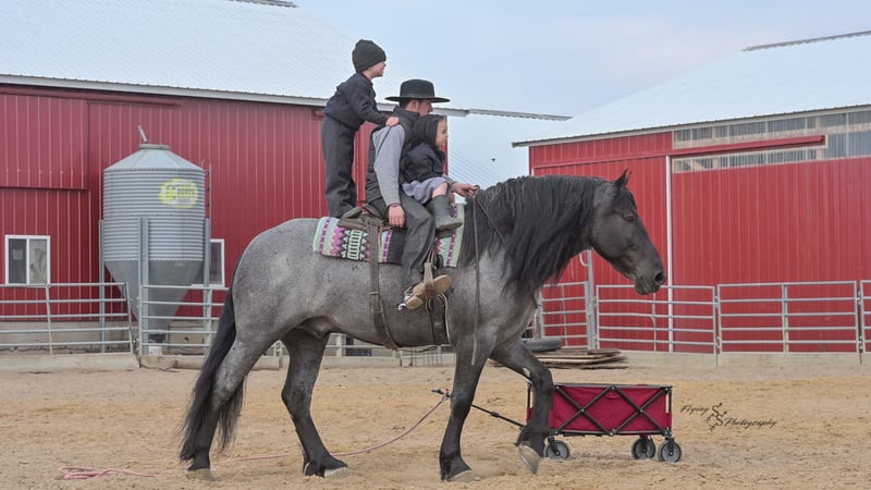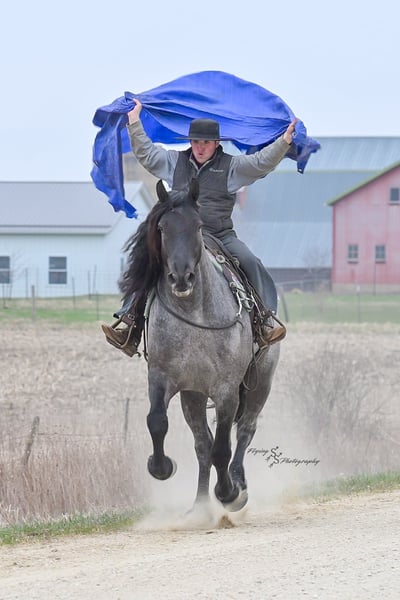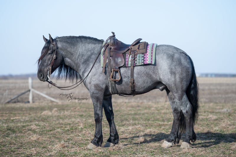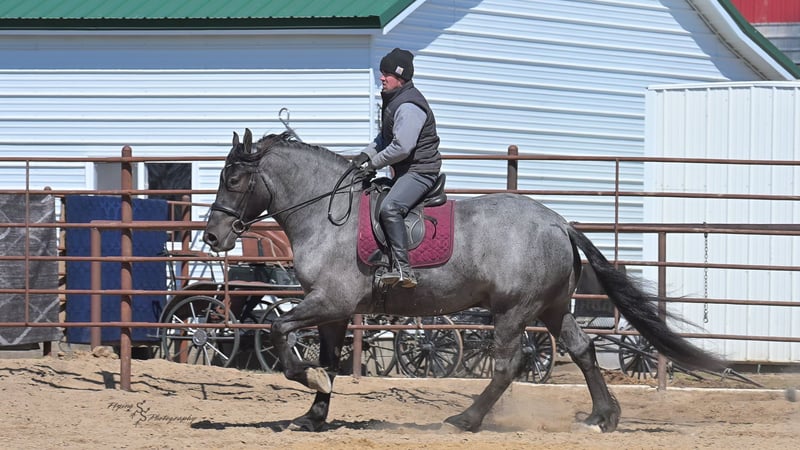 ONLINE AUCTION Place your bids at www.PlatinumEquineAuction.com Starting Bid $3500 Auction ends June 22nd, 2025 Need a new saddle? Check out White Rock Saddles on our website or Facebook! Every once in a blue moon, you come across a horse that stands above all the rest. I’m proud to offer you the once in a lifetime opportunity of owning one of the best horses I’ve ever had the privilege to own and train, Blue Moon. Blue Moon, or Blue as we often call him, is a 6 year old blue roan draft gelding that stands 16.1 hands. You will search many years before you will come across a horse who is as versatile as Blue is. He rides english, western, bareback, bridleless, liberty, and drives. Many say that their horse is a “once in a lifetime” horse, but Blue is the real deal. He is a standout, exemplary individual. Blue is broke enough for any level rider, as well as riders of any age. He has training that advanced riders will love, yet he is honest enough to take care of beginner riders. Blue is the literal go to horse in my barn for every person in my family. Everyone enjoys riding him and loves his disposition. Blue has been rode by all ages of riders, and has performed remarkably well with each individual. We are not afraid to turn the kids loose with him! My 4 year old nephew can confidently lead Blue around with his little sister in the saddle, and can ride Blue by himself without problem. My older nieces (8-12 years old) have loved taking him out on the trails and have gained so much experience in the saddle with him. I have owned Blue for one year, and have genuinely enjoyed the time I have spent training him. Blue is as gentle as he is versatile. He will excel in any direction he is taken. Blue is comfortable with the kids playing and dogs rough housing around him. He is used to all types of noises and machinery, from lawn mowers to semis, Blue has seen it all. He has been used around all types of farm equipment as well. He is happy to be hitched double or single to a carriage, and is a huge help when training other horses to drive. Blue is comfortable with a tarp, crosses logs and bridges, isn’t bothered by the crack of a bull whip, and entertains all of the shenanigans that we get into when playing with the little kids. Even after extended time off, you can bring him out of the stall or pasture, saddle him up and ride off without any problems. Blue stalls well, gets along well with other horses in the pasture, is easy to catch, and is an all around pleasure to spend time with. He is used to small pets, wildlife, as well as other small and large livestock. He will stand to be groomed and tacked with or without cross ties. He also side passes to the fence or mounting block to be mounted. For his size, he is very athletic and carries himself exceptionally. He is great in the arena, on the trail, in town amongst traffic, and anywhere else you could think of taking him. Blue correctly picks up his leads on cue, pivots, would side pass across a football field, has a nice extended trot, and lopes gorgeous circles. Blue is the horse I would trust anyone with, he is absolutely safe. Whether you want to trail ride through the rocky mountains, perform in the english show pen, or hitch him to a carriage in New York City, Blue is fully capable of doing it all. This gelding has a habit of exceeding all of your expectations, and could be considered the 8th Wonder of the World! There are few horses who you can truthfully turn loose with anyone, even fewer who can perform in so many disciplines, excelling in each. It seems like no matter how many great things are said, we barely scrape the surface of describing Blue. The way he looks is only the cherry on top! Blue is the definition of majestic with his eye-catching roan color, big round hip, kind eye, and overall balanced conformation. As if all of that is not enough, he has a mane and tail that Rapunzel would be jealous of. There are an endless amount of things to say about his training, his good nature, and how much I think of him. Blue is great for the veterinarian and farrier. He wears a #5 shoe on the fronts and a #4 shoe on the rears, and has good feet. Blue has a pre-purchase exam on file. If interested potential buyers would like to have radiographs, I am happy to assist in that. He is current on coggins. Blue is eligible to be registered in the IDSHR. If the buyer would like to have him registered, I would be glad to cover that expense and assist in registering him. I want Blue to have an amazing home, where he and his new owner work well together. To insure this, Blue will sell with a 30 day 100% satisfaction guarantee. I am confident that you will love Blue Moon as much as we have the past year. We are located in Fairbank, IA. If you have any questions, or would like to meet Blue prior to the auction ending, please call Edwin Raber 319-283-0616. I could write a book about this amazing gelding, so I urge you to call with any inquiries. I will be happy to talk with you more about my best bud, Blue Moon. ONLINE AUCTION Place your bids at www.PlatinumEquineAuction.com Starting Bid $3500 Auction ends June 22nd, 2025 Need a new saddle? Check out White Rock Saddles on our website or Facebook!