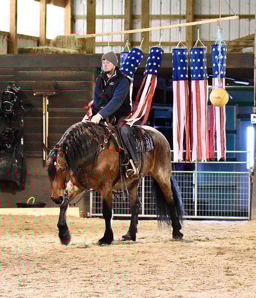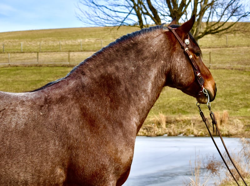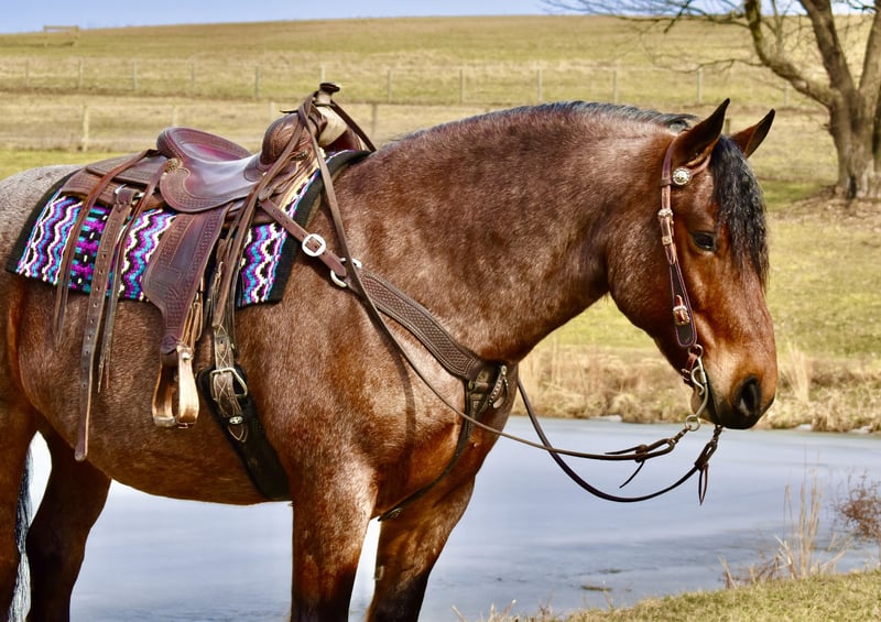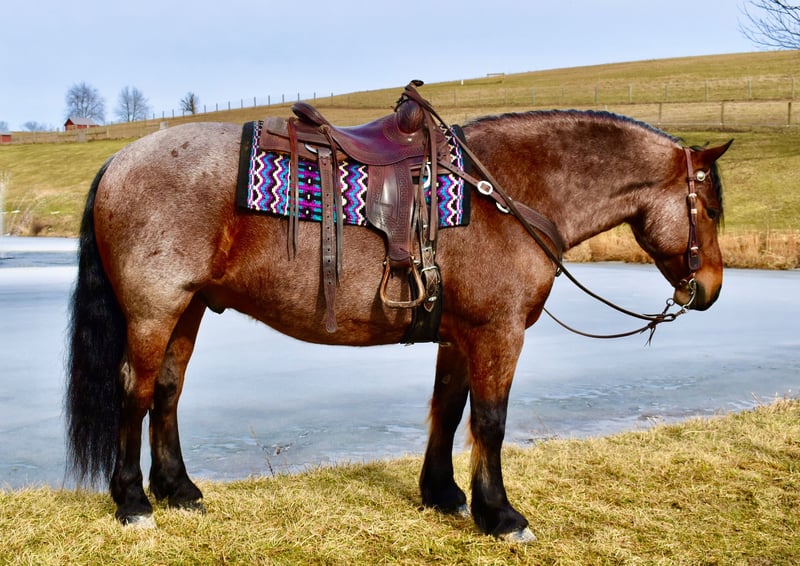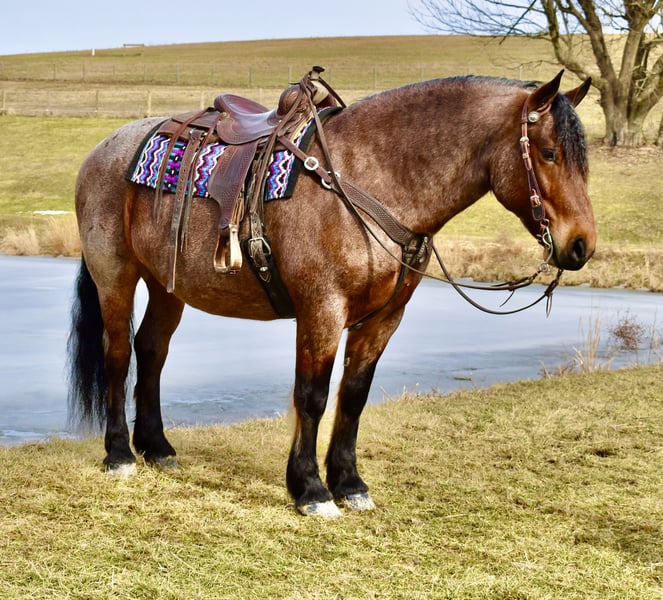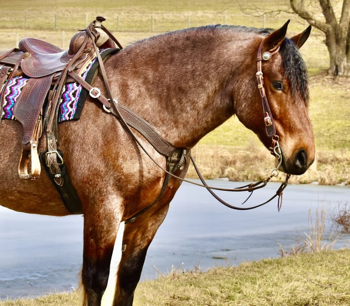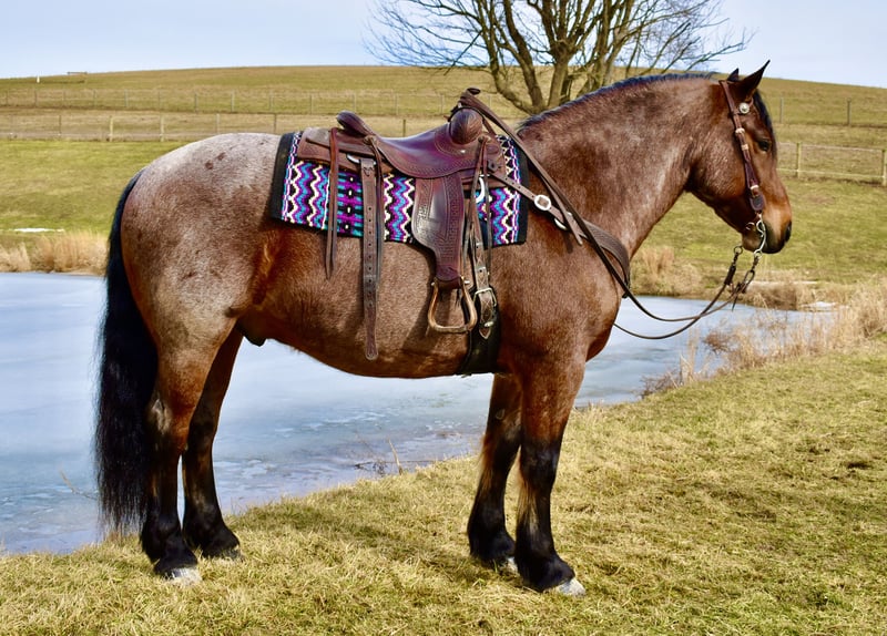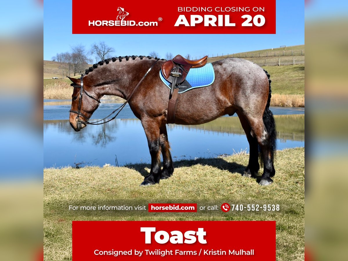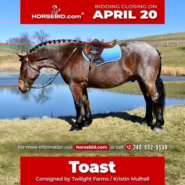 ⚜️𝐭𝐡𝐞 𝓔𝓵𝓲𝓽𝓮 𝐒𝐩𝐫𝐢𝐧𝐠 𝐂𝐥𝐚𝐬𝐬𝐢𝐜⚜️ Happening now thru MONDAY | APRIL 20th - Available EXCLUSIVELY on HorseBid's website! For more details and to register visit: www.Horsebid.com CONSIGNOR CONTACT: Twilight Farms / Kristin Mulhall 740-552-9538 LOCATION: Fresno, OH BREED: Brabant / Quarter Horse REGISTERED: No REGISTERED NAME: Toast COLOR: Bay Roan HEIGHT: 16.3 AGE: 8 GENDER: Gelding Meet Toast — a standout 8-year-old, 16.3 hand Brabant / Quarter Horse cross gelding offering a rare combination of presence, proven training, and true all-around versatility that is incredibly hard to find in today’s market. This striking bay roan gelding is the definition of eye-catching. With his powerful draft cross build, balanced conformation, and natural presence, Toast turns heads everywhere he goes. But what truly sets him apart is what he brings to the table beyond his looks—this is a horse with substance, experience, and the kind of mind that makes him a pleasure to own. Toast was started with a solid ranch horse foundation and later refined by a professional reining trainer, giving him the best of both worlds. He is polished and responsive, yet remains honest, forgiving, and dependable. Under saddle, he rides both English and Western with ease, carrying himself naturally and working off soft, willing cues. He side-passes, pivots, lopes off quietly, and stays soft in the bridle with a relaxed, trainable mindset. One of Toast’s most standout qualities is his comfort level. His jog is incredibly smooth—like sitting on a couch—and his lope has that easy, rocking horse rhythm that makes him a joy to ride for hours. He is the kind of horse that both adults and kids appreciate, and it’s no surprise he has quickly become a barn favorite for his rideability and kind nature. Out on the trail, Toast is as solid and dependable as they come. He confidently crosses water, bridges, brush, and rough terrain without hesitation. His extensive background includes real ranch work in Texas, where he roped cattle, ponied young horses, and helped start colts. This real-world experience has created a horse that is not only well-trained but also practical, seasoned, and reliable in any situation. Adding even more versatility, Toast is also broke to drive and has proven himself to be a quiet, confident carriage horse. He has logged many miles this winter driving down back roads and through traffic, handling everything he encounters with maturity and ease. Whether under saddle or in harness, Toast is the same steady, willing partner every time. At the ideal age of eight, Toast is a finished gelding that is ready to step into just about any program. Whether you are looking for a dependable trail partner, a versatile family horse, a driving horse, or a standout mount for new adventures like fox hunting, Toast has the foundation, experience, and disposition to excel. Horses like Toast don’t come around often. He is the kind you search for, the kind you compare everything else to—and the kind you don’t want to miss.