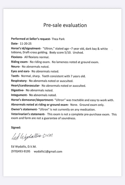 "AVAILABLE ON ONLINE HORSE AUCTION AT www DOT MagicHorseAuction DOT com BIDDING OPEN NOW thru TUESDAY | December 9TH! - BUY IT NOW AVAILABLE! *Final price will be determined on auction site* CONSIGNOR CONTACT INFO: Thea Park 970-632-3644 LOCATION: Fort Collins, CO "★★ ULTRON ★★ Gelding | Chrome • Quiet • Ranch & Trail Tested Ultron is an absolute showstopper — the kind of gelding who turns heads wherever he goes. With his chromed-out coat, strong conformation, and fluid movement, he’s a striking presence, but it’s his quiet, respectful nature and steady brain that make him a true standout. This gelding is solid. Calm, sensible, and well-started, Ultron has been extensively trail ridden, worked in the arena, and even done some drill team practice. He’s equally comfortable out alone or in a group and has been hauled through town, directly alongside traffic, trains, strollers, and all the unpredictable chaos that comes with riding through urban settings. He’s also mountain tested — Ultron has packed in miles through the Rocky Mountains, navigating rough terrain and steep climbs without hesitation. He’s gritty, athletic, and confident in new places, making him an ideal ranch, hunting, or pack prospect. In the arena, Ultron is just as smart and capable. He has a quiet walk, smooth jog, and strong lope. He responds well to seat and hand, has a good stop and back, and picks up on cues quickly. He’s naturally collected and has the kind of feel that makes him a pleasure to bring along. Ultron is the kind of gelding who bonds closely with his person, is easy to catch, and loves attention. He gets along with all types of horses and livestock, is respectful in the herd, and stands tied, loads, bathes, and is great for the vet and farrier. If you’re looking for a chromed-out gelding with a steady mind, solid foundation, and the athleticism to go in any direction — Ultron is ready for the job. 📞 Contact us to learn more or set up a time to meet him in person.