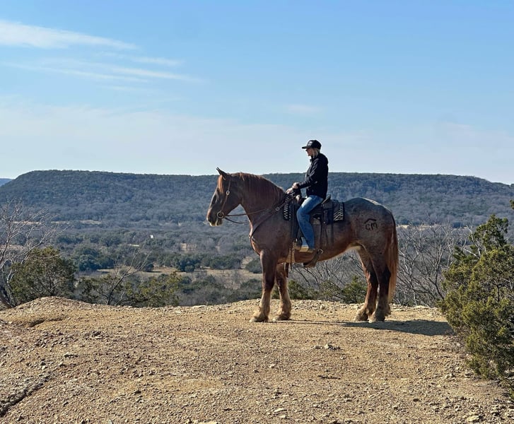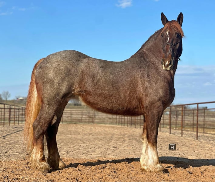 ONLINE AUCTION Place your bids at www.PlatinumEquineAuction.com Starting Bid $3500 Auction ends February 3rd, 2025 Need a new saddle? Check out White Rock Saddles on our website or Facebook! Merlot is a beautiful red roan mare standing 16.2 hands tall with enough mass to pull a house down. We normally call horses like her the perfect beer drinking horse but this mare is so classy we call her a wine drinking horse. Merlot is a sweet mare that is gentle and kind. She lowers her head to be haltered and bridled. She saddles up like a lady every day and is the perfect mount to jump on and go down the trails, or hook up and drive to town. She will cross all the obstacles we have found including water, logs, brush, and mud and will go up and down even the toughest of terrain with sure footedness. She will lead, follow, or go out on her own. She loads and unloads with ease and stands tied. Merlot will stand at the mounting block, cross tie, and is good stalled or turned out. We have never seen her show any mare tendencies. She is barefoot and sound with clean/straight legs. She is a stunning mare with chrome and mass that you have to see in person to appreciate! FMI call/text Holland Horse Co Chanel 559-978-6320. We are happy to answer questions, schedule a test ride, or help arrange shipping nationwide! Located in Jacksboro, TX. ONLINE AUCTION Place your bids at www.PlatinumEquineAuction.com Starting Bid $3500 Auction ends February 3rd, 2025 Need a new saddle? Check out White Rock Saddles on our website or Facebook!