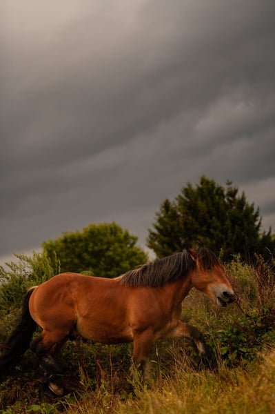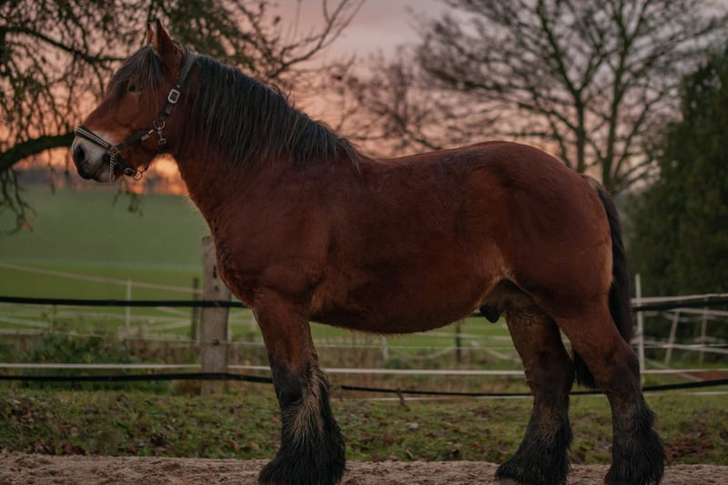 Auch 2026 wird dieser auffallend schöne Ardennerhengst Kaltblutstuten wieder zur Verfügung stehen. Er ist gekört (2023) und Leistungsgeprüft (2024) und überzeugte mit hohen Noten. Er wird sehr regelmäßig geritten und gefahren und zeigt dabei stets Arbeitswillen, Leistungsbereitschaft und Go. Zudem hat er tolle Grundgangarten und ist sehr beweglich. Besonders hervorzuheben ist sein ruhiges und ausgeglichenes Wesen, keinerlei Hengstmanieren und durch nichts aus der Ruhe zu bringen. Jumbo ist einfach eine imposante Erscheinung, schon seine 30 cm Röhrbeinumpfang deuten auf ein enormes Tragpotential hin. Er ist ein Originalfranzose, im Ardennengebirge geboren und 2 jährig importiert. Deckbedingungen bitte persönlich erfragen