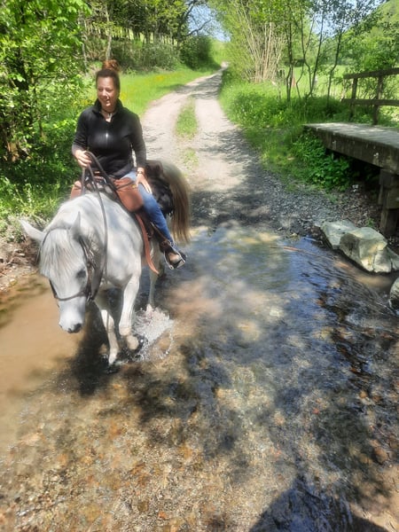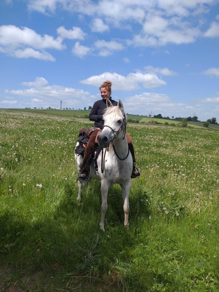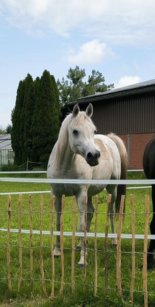 Ich suche für meinen Vollblutaraber-Wallach (OX, 13 Jahre, ca. 1,53 m) ein neues Zuhause, in dem er das bekommen kann, was er am meisten liebt: lange, flotte Ritte durchs Gelände. Mahboub hat eine solide Western-Grundausbildung, wurde von mir aber vor allem freizeitmäßig im Gelände geritten. Dort ist er absolut in seinem Element – unerschrocken, trittsicher und motiviert, egal ob allein oder in der Gruppe (am liebsten vorne, versteht sich 😄). Er hat bereits Wanderritte, Reiturlaube und sogar Distanzritte gemeistert. Gelassenheitstrainings kennt er ebenfalls. Er ist ein menschenbezogener Kerl, der zu seiner Bezugsperson eine echte Bindung aufbaut – er kommt sogar von der Weide galoppiert, wenn man ihn ruft. Dabei ist er kein Kinderpferd, denn er fragt ab und zu freundlich nach, wer eigentlich das Sagen hat. Mit liebevoller Konsequenz und klarer Führung ist er aber ein wunderbarer Partner. Er ist gesund, regelmäßig geimpft, Zähne und Osteopathie wurden stets gemacht, Schmied und Anhänger sind kein Problem. Eine Druseinfektion hatte er einmal, sonst war er nie ernsthaft krank. Er hat eine sehr gute Abstammung, aber leider keine Papiere. Er ist rangniedrig und kennt Offenstall, 24h-Weide sowie Weide mit Nachtbox – letztere mag er besonders gern, da er dort in Ruhe fressen und liegen kann. Für ihn wünsche ich mir ein Zuhause mit viel Weidegang und Pferdegesellschaft( weil er sehr gerne spielt), aber auch einem Menschen, der Spaß an flotten Ausritten hat und vielleicht auch Lust, mal eine Distanz zu reiten. Ich verkaufe ihn nicht schnell, sondern nur in ein zu ihm passenderes Zuhause – das Herz soll am Ende auf beiden Seiten stimmen. ❤️ Wenn Interesse besteht, bitte ich in der Nachricht um eine kurze Vorstellung: Welche Wünsche hast du an das Pferd? Wie sieht die Haltung aus etc. Wir freuen uns auf Zuschriften…..