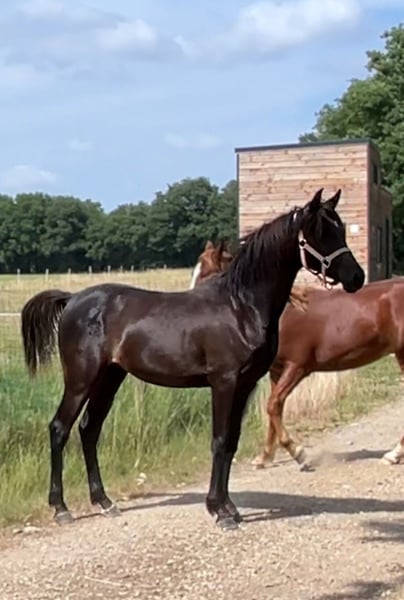 Urodzony pod koniec kwietnia 2024 roku, Hadj jest elegancki, inteligentny i zżyty z człowiekiem. Ciekawy i bardzo bliski człowiekowi, uwielbia, gdy się nim zajmują. Dynamika i lekkość jego chodów oraz zrównoważony charakter to atuty dla konia sportowego lub wszechstronnego do rekreacji. Ancestralne pochodzenie (stare linie) Hadja może również predysponować go do hodowli. Jego wzrost pozwala przewidywać, że jako dorosły koń będzie miał ponad 1,55 m wysokości. Hadj, jak wszystkie źrebaki, jest oswajany, szczepiony, odrobaczany i suplementowany. Wychowywany jest w grupie i przede wszystkim został odstawiony od matki późno (11 miesięcy). Jego cena zmienia się wraz z wiekiem i postępami w pracy. W hodowli dostępnych jest wiele innych koni na sprzedaż, proszę odwiedzić stronę i skontaktować się ze mną przez SMS w celu uzyskania dalszych informacji, w tym HADJ DU GREMILLON, źrebaka ogiera 2024 czarnego czystej krwi arabskiej. Hadj, jak wszystkie źrebaki, jest oswajany, szczepiony, odrobaczany i suplementowany. Wychowywany jest w grupie i przede wszystkim został odstawiony od matki późno (11 miesięcy). Jego cena zmienia się wraz z wiekiem i postępami w pracy. W hodowli dostępnych jest wiele innych koni na sprzedaż, nie wahaj się odwiedzić strony „Haras du Gremillon” i skontaktować się przez SMS w celu uzyskania dalszych informacji.