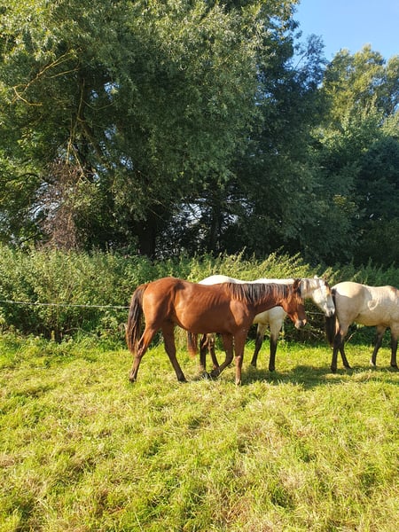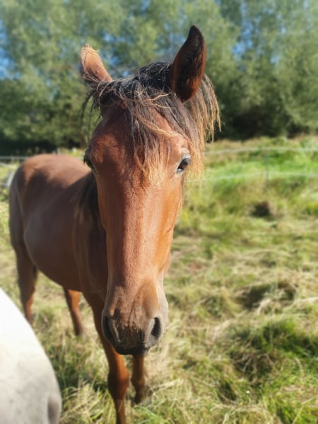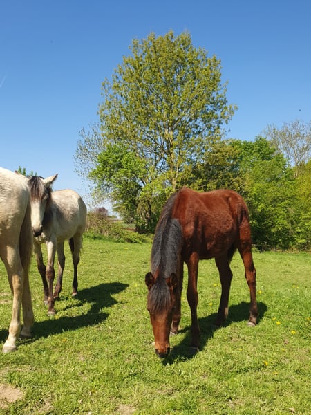 Jeune étalon Azteca avec potentiel cherche des mains affectueuses Je vends de tout cœur mon prometteur étalon Azteca de un an, de couleur marron. Ce joli jeune est un mélange réussi de PRE et de Quarter Horse, ce qui lui confère non seulement un bel aspect, mais aussi beaucoup de potentiel pour l'avenir. Ses bonnes mouvements étendus soulignent sa qualité. Il grandit chez nous dans le respect de son espèce et est parfaitement minéralisé. Nous le voyons comme un partenaire talentueux pour des cavaliers ambitieux en équitation de travail ou dans le domaine du loisir supérieur. Pepe est un petit cheval qui conquiert rapidement le cœur avec sa curiosité et son charme. Si tu es à la recherche d'un jeune cheval particulier qui souhaite être encouragé avec amour et savoir-faire, n'hésite pas à me contacter.