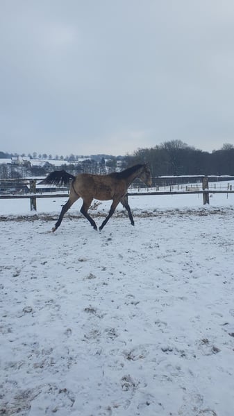 ✨ Absolute Ausnahme-Offerte: Azteca Jungstute in Traumfarbe ✨ Zum Verkauf steht eine vielversprechende, 1-jährige Azteca B Stute, die nicht nur durch ihre Optik, sondern auch durch ihren Charakter und ihre Gangqualität besticht. Evita wird in den USA registriert und bekommt Papiere der AAHIA Eckdaten: Rasse: Azteca (Lusitano x Azteca D) Die Mutter ist eine direkte Tochter vom portugiesischen Olympia Teilnehmer Viheste AR. Der Vater ist mein Azteca Nachwuchshengst SOL shining Star PR, direkter Sohn von Paco Martis Ausnahmehengst SOL PM. Elterntiere sowie die Oma sind vor Ort. Alter: 1 Jahr (geb. 05/25) Farbe: Buckskin Sooty (wird ein wunderschönes, dunkles Gold mit markanter Schattierung) Geschätztes Endmaß: ca. 160 cm Standort: 32257 Charakter & Gebäude Diese junge Dame vereint das Beste aus zwei Welten: Den Stolz, Mut und die Eleganz der portugiesischen Pferde gepaart mit der Gelassenheit und dem korrekten Fundament des Aztecas. (letzte Fotos zeigen den Vater) Sie zeigt sich altersgemäß neugierig, menschenbezogen und sehr lernwillig. Sie kennt das Fohlen-ABC, Anhänger fahren, gibt brav die Hufe und lässt sich überall anfassen. In der Herde zeigt sie sich sozial und unerschrocken. Potential Durch ihren kompakten, kräftigen Körperbau und ihre Wendigkeit eignet sie sich später hervorragend für: Working Equitation (ihre Paradedisziplin!) Freizeitreiten auf hohem Niveau Show & Liberty Zucht (aufgrund der seltenen Farbe und des korrekten Gebäudes) Aufzucht Sie wächst artgerecht im Herdenverband mit viel Bewegung auf. Sie ist regelmäßig entwurmt, dem Schmied vorgestellt und erhält hochwertiges Mineralfutter für eine optimale Skelettentwicklung. Ich suche für diese besondere Stute ein förderndes 5-Sterne-Zuhause mit Familienanschluss Kontakt: Bei ernsthaftem Interesse freuen Evita und ich uns über eine Nachricht.