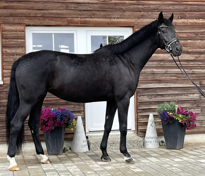 Schicke, lackschwarze Zuchtstute zu verkaufen