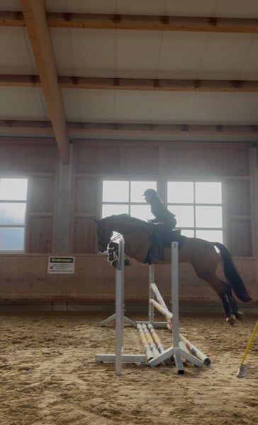 Sehr talentierte Baden-Württemberger Stute, Jahrgang 2018, aus der Abstammung des Hengstes Ciacomo. Diese Linie ist bekannt für Vermögen, Technik und Leistungsbereitschaft am Sprung – Eigenschaften, die sich bei dieser Stute klar widerspiegeln. • Beim Freispringen zeigt sie bereits ein beeindruckendes Vermögen bis 1,50 m, vereint mit einem sehr guten Sprungablauf und viel Übersicht. Aktuell befindet sie sich auf einem soliden A-Niveau im Springen, mit klarem Potenzial für die schwere Klasse. Dressurmäßig ist sie auf gutem A-Niveau gearbeitet, und steht sehr fein an den Hilfen. Auch Geländespringen ist ihr bekannt, hier zeigt sie sich sehr ehrgeizig, mutig und befindet sich in ihrem Element. • Die Stute ist vielseitig gearbeitet und kennt: -Doppellonge -Longe -Handarbeit -tensegrales Faszientraining -Spaziergänge -Freiarbeit -Freispringen • Im Umgang zeigt sie sich zuverlässig: -lässt sich sowohl auf Hänger, als auch Transporter problemlos verladen -brav beim Schmied, Tierarzt und Osteopathen -Zähne regelmäßig gemacht -befundfreie AKU aus 2024 liegt vor -regelmäßig entwurmt • Charakterlich ist sie eine starke Persönlichkeit: Sie benötigt einen durchsetzungsfähigen und erfahrenen Reiter, der ihr Sicherheit gibt. Hat man sie jedoch auf seiner Seite, zeigt sie sich äußerst leistungsbereit, rittig und loyal. Sie ist nicht für Anfänger oder Wiedereinsteiger geeignet. • Aktuell steht sie in Boxenhaltung mit täglichem Auslauf in einer großen Stutenherde, Einzelkoppel ist ihr auch problemlos bekannt. Kann nicht im Offenstall stehen. • Auch für die Zucht ist diese Stute auf Grund ihrer hervorragenden Abstammung sehr interessant. • Eine spannende Stute für ambitionierte Reiter, die ein Pferd mit viel Qualität und Entwicklungspotenzial suchen. • Bei Interesse oder Fragen bitte unter folgender Nummer per WhatsApp kontaktieren: 015901273877