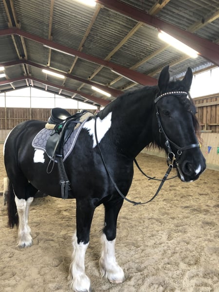 Ella, born in 2015, is a stunning, typified German Pinto Baroque mare (height approx. 1.68 m) with a foal premium, who captivates immediately with her special expression and presence. Ella came to us already started under saddle and has been further developed over the past four years with a lot of patience and love. In daily training, she works reliably, responds sensitively to correct aids, and enjoys gymnastic exercises such as leg yielding, shoulder-in, and light travers. She loves going out on trails – both alone and in groups – and shows real enthusiasm for jumping. Ella is a horse that thrives with a clear, consistent handler. She feels less comfortable with changes in riders, which is why we are looking for an experienced rider who can provide her with security, structure, and fair guidance. She is not suitable for beginners. 👉 Care & Health: Ella currently lives in a paddock, but is also familiar with box housing. She is barefoot and has been regularly seen by the farrier, veterinarian, osteopath, and saddler. Vaccinations and deworming are up to date. With her foal premium and her typified appearance, Ella is also of interest to breeders. Equipment can also be purchased if needed.