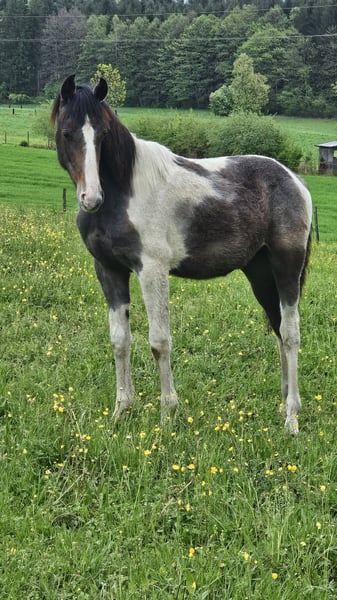 Zur verkauf steht mein geliebte 1 Jahr und 6 Monate alte Pinto Stute Oshana. Sie liebt kuscheln und knuddeln und ist ein sehr offenes Pferd. Allerdings auch sehr Lebensfreudig. Da sie noch sehr jung ist hüpft sie gern herum und testet gerne ihre Grenzen. Aus kosten Gründen muss ich mich leider schweren Herzens verabschieden. Sie lässt sich aufhalftern, ist barhuf und kennt den Hufschmied und ist auch an das Führen gewohnt. Jeglicher Zubehör kann mitgenommen werden wie Decke, Futter, Halfter etc.
