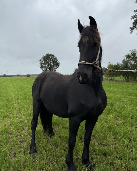 Ich biete hier meine 4 jährige tragende Stute zum Verkauf an. Sie ist vom Frühjahr 2021. Der Pass liegt vor. Sie ist eine ruhige freundliche Stute. Sie kennt alle möglichen Hoftiere, Hufschmied und das Anhänger fahren ist für sie auch kein Problem. Außerdem ist sie eine fürsorgliche gute Mutter, da sie bereits 1 Fohlen ohne Komplikationen aufgezogen hat. Sie ist wieder von einem sportlichen Friesenhengst tragend. Ihre super ausdrucksstarken Gangarten können gerne per Video auf Anfrage zugesendet werden. Reiterlich ist sie noch für alles Offen. Bei ernsthaften Interesse gerne melden 015221813857