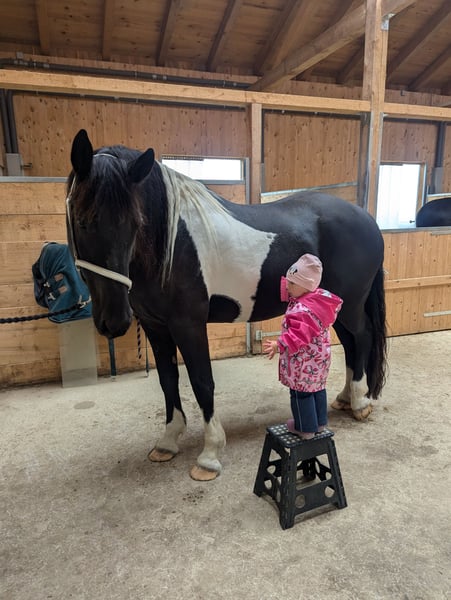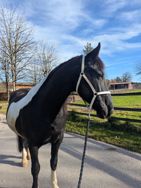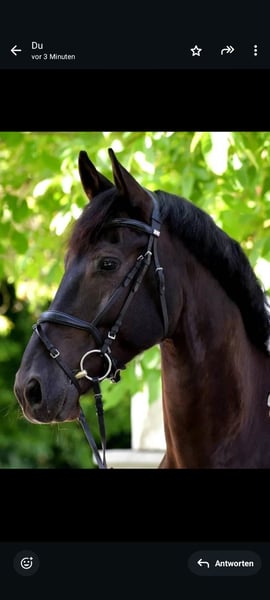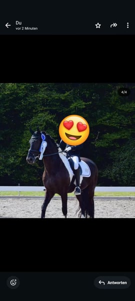 Aufgrund sich ändernder Lebensumstände, muss ich für meinen Wallach Derrick ein neues Zuhause suchen. Derrick ist ein vielseitig ausgebildeter Sportler, den ich seit Fohlenalter habe. Er wurde nach der klassischen Reitweise ausgebildet und 4jährig eingefahren. Mit Einführung des Kutschenführerscheins, wurde dies nicht mehr gefördert. Unsere Hauptdisziplin ist von je her die Dressur. Hier zeigt er sich lernwillig und Freude an der täglichen Arbeit. 2021 ist er seine erste Turniersaison gegangen und wir konnten einige Schleifen mit nach Hause nehmen (bis 2. Platz in der damaligen A*). Während meiner Schwangerschaft und Elternzeit, wurde er in Vollberitt bis zur Klasse M ausgebildet und sollte hier auch auf Turnieren vorgestellt werden. Jedoch hat sich die Bereiterin beruflich umorientiert und Derrick kam dann wieder zu mir und genoss seine letzten 2 Jahre als Freizeitpferd. Hier lag der Fokus auf viel Ausreiten, Bodenarbeit und im Sommer auf Working Equitation. Als nun klar wurde, dass sich unsere Wege trennen müssen, zog er zum Winter wieder in den Berittstall und wird hier auf die kommende Turniersaison und den Verkauf vorbereitet und wieder auftrainiert. Offenstall gehört nicht zu seiner bevorzugten Haltungsform. Wir haben es mehrmals versucht, jedoch möchte er mindestens Nachts seine eigene Box haben um zur Ruhe kommen zu können Charakterlich hat Derrick zwei Gesichter. In gewohnter Umgebung ist er ein Lamm. Hier kann auch meine Tochter (3) ihn überall hinführen, putzen und mir beim Longieren helfen. In fremder Umgebung ist er anfangs unsicher. Hier benötigt er ein gelassenes Pferd oder einen Menschen der ihm Sicherheit vermittelt und nicht selbst unsicher wird. Daher möchte ich ihn nicht an reine Anfänger verkaufen. Ich suche jemanden, der nicht nur im Freizeitmodus mit ihm arbeitet, sondern ihn auch weiter Fordert und Fördert in welcher Disziplin auch immer. Er ist bei allem dabei :) Falls du die Nadel im Heuhaufen bist, dann melde dich gern bei mir. Es können auch weitere Bilder und Videos geschickt werden. Auch von der aktuellen täglichen Arbeit. Ein im März neu gekaufter Dressursattel wird mit abgegeben. .