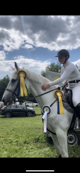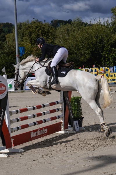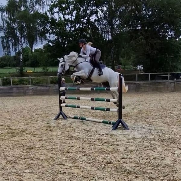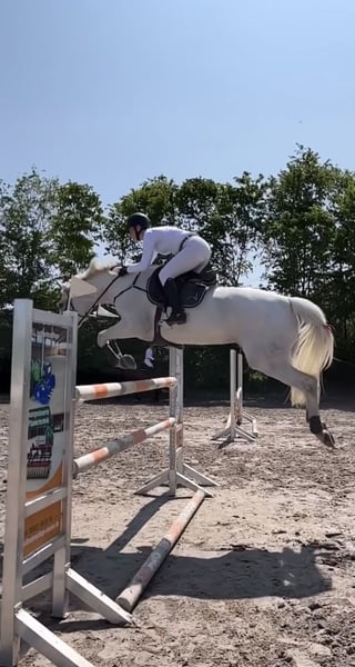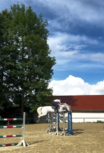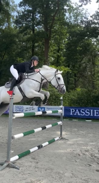 Zum Verkauf steht eine schöne Schimmelstute, tragend von Newmarket Eckdaten: Abstammung Stute: Cachas x Lancer III Abstammung Hengst: Chacoon Blue x Numero Uno Deckdatum: 22.04.2025 Hengststation Nijhof, der Hengst ist international bis 1,40 m erfolgreich. Stute (Geburtsjahr 2011): Carrera hat mehrfach M und L gewonnen, S fertig im Training gesprungen. Wir haben Carrera 3 jährig gekauft und bis zur schweren Klasse ausgebildet. In der Zeit lief sie immer verletzungsfrei und wir konnten einige Siege holen. Kann also auch nach der Zucht geritten werden. Aufgrund von Zuchtaufgabe müssen wir uns leider von ihr trennen… Nur in beste Hände abzugeben!