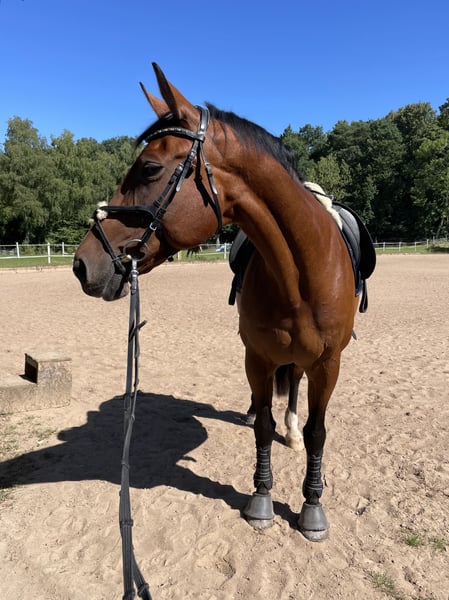 Hallöchen :) Für meine Stute Karina (1,65 m Stockmaß) suche ich eine zuverlässige Reitbeteiligung für 2x pro Woche. Karina ist ein sehr liebes und ehrliches Pferd. Sie ist gut ausgebildet und läuft auch höhere Lektionen problemlos, sie ist also ein sehr guter Lehrmeister. Allerdings hat sie auch ordentlich Go, womit man umgehen können muss.😊 Neben dem Reiten machen ihr aber auch Longieren und Bodenarbeit großen Spaß. Zudem liebt sie auch einfach ausgiebige Kuscheleinheiten und ist allgemein sehr menschenbezogen. Wenn du mindestens auf einem soliden E-Niveau reitest und Lust hast, Karina kennenzulernen, oder auch bei Fragen, kannst du mich gerne anschreiben. Wir freuen uns auf dich! 😊