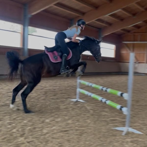 Wir suchen ein neues liebevolles Zuhause für unsere "Frieda". Frieda ist trotz ihres Alters topfit und will beschäftigt werden. Sie läuft in der Dressur bis ca A Niveau und auch schon einzelne L Lektionen kann sie auch. Springen macht ihr auch große Freude, egal ob Trabstangen, Cavaletti oder Sprung. Ins Gelände geht sie auch brav und zuverlässig. Im täglichen Umgang ist sie brav erzogen und kennt keine Unarten. Da Friede schon einmal im Schulbetrieb gelaufen ist (1 Jahr) ist sie es auch gewohnt mit Ausbindern mit Anfängern zu laufen. Unsere Tochter hat mit ihr das Reiten gelernt und innerhalb von 4 Jahren mit Frieda bis L Niveau erlernt. Wir wünschen uns ein liebevolles Zuhause für sie. Bei uns steht sie unter Tags in einer kleinen gemischten Herde und Nachts in der Box. Reine Boxengaltung, bitte nur mit täglichen Auslauf. Frieda gibt ihrem Reiter immer ein gutes und sicheres Gefühl, trotz ihres Vorwärtsdranges. Bei uns war sie in den 4 Jahren keinen Tag krank. Bei Interesse kann ein Termin zum Kennenlernen und Probereiten ausgemacht werden. Hierfür nehmen wir uns Zeit und verlangen daher eine Gebühr von 45€, welche beim Kauf verrechnet werden. Bei Bedarf kann ein VS Sattel und ein Dressursattel miterworben werden.