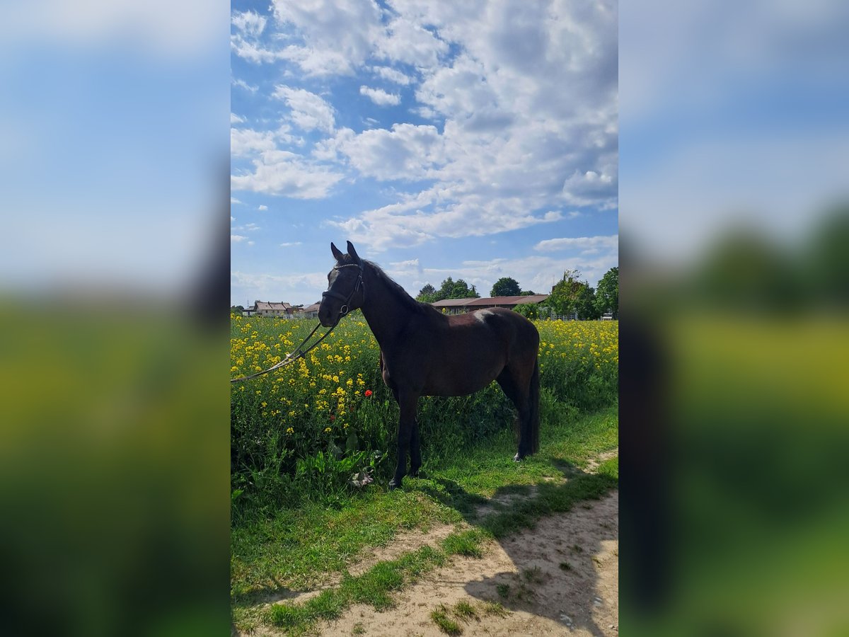 Rasse: Bayerisches Warmblut Alter: 9 Jahre Geschlecht: Wallach Stockmaß: 165 cm Farbe: Schwarzbraun Abstammung: Bossanova Haltungskonform: Aktivstall/Offenstall in der Wallachherde Verwendungszweck: Freizeit, Dressur, Working Equitation Er ist regelmäßig Entwurmt, geimpft und im März 2026 wurden die Zähne gemacht. Er besticht durch seinen äußerst feinen Charakter. Er ist verschmust, aufgeweckt und sehr intelligent. Er liebt die Haltung im Aktivstall und soll auch in Zukunft diese Art der Haltung genießen dürfen. Er ist zuverlässig und geht problemlos alleine ins Gelände – egal ob zum Spazieren oder Reiten. Er ist ein toller Reitpartner für alle, die Spaß an der Arbeit mit einem freundlichen und zuverlässigen Pferd haben. Er wird in der Halle, auf dem Platz oder im Gelände gearbeitet. Er hat regelmäßig Beritt. Er kommt super mit vielen Pferden auf Halle und Platz aus. Wir stehen auf einem Stall mit Schulbetrieb mit vielen Ponys. Der Vollständigkeit halber: Barni hat zwei kleine, seit Jahren unveränderte Sarkoide, die bisher keinerlei Probleme gemacht haben. Laut Tierarzt besteht aktuell kein Handlungsbedarf. Wichtig: Für ein Probereiten erbitte ich 50 €, die beim Kauf selbstverständlich zurückerstattet werden. Bitte nur ernst gemeinte Anfragen – keine Schulbetriebe. Bei Interesse oder Fragen stehe ich gern zur Verfügung. Ich freue mich auf eure Nachrichten!