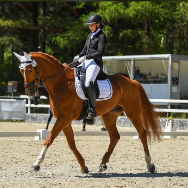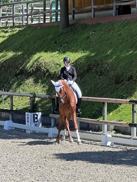 A wonderful 12-year-old Bavarian gelding is looking for his person. Le Petit d’Or, affectionately called “Goldi,” is a dressage horse confidently performing movements up to level M**. He has no trouble with piaffe and passage, as well as series of flying changes at home. During the 2025 season, he has been multiple winner of M** classes and has competed successfully in Austria and Switzerland. Goldi prefers to go to competitions over a weekend. He also enjoys working over poles and occasionally jumping for variety. Goldi can be a bit unsure in the terrain, but with a companion, even this is manageable. In handling, he is an absolute sweetheart. Whether grooming or in his box, Goldi is always gentle and friendly with his people. Although he is a fantastic partner, he is not suitable as a beginner’s horse. He sometimes needs the rider to provide him with a bit more confidence and can occasionally be a bit wary of other horses. Please feel free to contact me if you have any questions.