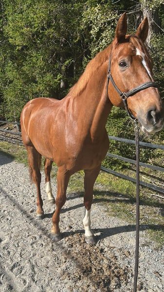 Allow me to introduce: Goldi – an impressive 13-year-old chestnut gelding with heart and quality. Standing at 1.70 meters, Goldie is not only a real eye-catcher but also a reliable sport partner. In competition, Goldie has been successful up to class M* and has achieved multiple placements in M**. He consistently performs with confidence, routine, and a strong willingness to compete. He also impresses in show jumping, with experience up to class A at competitions. But Goldie’s qualities extend beyond his sporting achievements: He is a pleasure to handle daily, and his friendly, golden personality makes him a true cuddle buddy who loves human contact and brings joy every day. Whether an ambitious competitive rider or someone seeking an honest, lovable horse, Goldie combines performance and character in a truly special way.