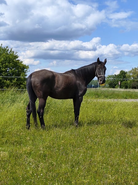 Dino is a 14-year-old Bavarian warmblood gelding. Due to a lack of time, which prevents me from giving him the attention he deserves, I am looking to place Dino in good hands. He has a height of approximately 1.78 meters (about 16.1 hh) and is well-suited for larger riders, but he can also be comfortably ridden by less experienced or smaller riders. Initially, Dino needs some time to get used to new people, but he does not show any bad habits beyond normal testing behavior. Once he has settled in, he is a reliable partner who will loyally accompany you. He has been ridden mainly for leisure, with a focus on dressage work, but small jumps and riding out with other horses are no problem. Dino does not exhibit any vices such as bucking, rearing, or kicking. Currently, he is kept in box stabling with daily turnout and a paddock walk, sharing a paddock with a mare. For further questions, please feel free to contact me. No urgent sale, only to suitable, experienced riders!