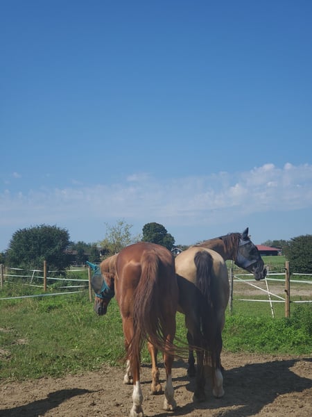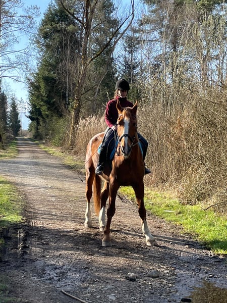 Ich suche für meinen Wallach Wilson eine Reitbeteiligung. Aufgrund meines Studiums im Ausland steht der Herr im Moment meistens auf der Koppel, wünscht sich aber wieder Bewegung. Wilson ist 1.74 cm groß und 23 Jahre jung, lässt sich jedoch in Fitness und Fröhlichkeit nichts nehmen. Er ist wahnsinnig gutmütig, gemütlich und lernfreudig, hat jedoch auch seinen eigenen Charakter und sorgt deshalb oft für lustige Stunden aber auch für den Ausbau der eigenen Geduld. Da er (meistens) Spaß an der täglichen Arbeit und Bewegung hat, suche ich für ihn nun eine Reitbeteiligung. Ich bin mit ihm früher auf kleine Springturniere gegangen, da ihm diese Disziplin am meisten Spaß bereitet. Im Alltag sind wir sonst vor allem Dressur geritten, jedoch mit viel Stangenarbeit abwechslungsreich gestaltet. In den letzten Jahren bin ich vor allem Ausreiten gegangen, da ich den Ausgleich schätze und Wilson brav allein ins Gelände geht. Du solltest vor allem Durchsetzungsvermögen und Feingefühl mitbringen, da er seine Reiter am Anfang testet. Hast du dann einmal sein Vertrauen gewonnen, kannst du mit ihm alles machen. Er ist relativ triebig und achtet auf präzise Hilfengebung. Gute Technik ist deshalb von Vorteil, kann aber dadurch auch verbessert oder erlernt werden, du solltest aber bereits gut reiten können. Falls du dir die Freundschaft mit Wilson vorstellen kannst, melde dich gerne bei mir!