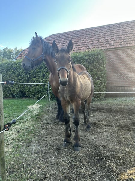Zum Verkauf Wunderschöner brauner Zugpferd-Hengstfohlen. Geboren im Jahr 2025, Reserve-Kampion bei der Fohlenprüfung des kvth. Braves Wesen.