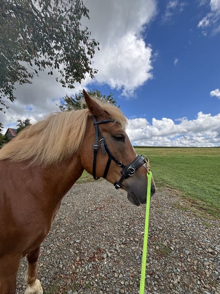 Hallo Zusammen, ich suche für meine 12 jährige Stute eine Reitbeteiligung. Sie steht in Gefrees. Luna ist ein total liebes gemütliches Pferd. Sie ist lernwillig brauch aber dennoch eine konsequente Hand. Sie ist ein Kaltblut und muss daher stetig bewegt und aufgebaut werden und speziell am langen Zügel geritten werden. Daher suche ich jemanden zuverlässigen und Erfahrung mit Pferden. Am liebsten wäre mir, dir steht nicht nur der Spaß im Vordergrund, sondern auch das Wohl und arbeiten mit dem Pferd. Sie liebt Spaziergänge, Bodenarbeit, Blödsinn lernen. Was ich mir von dir wünsche/was dich erwarten kann: - 1-2x die Woche (wenn mehr gerne) - longieren - Bodenarbeit - Pflege vom Pferd - gerne Spaziergänge oder Ausritte (Gelände) - reiten auf dem Platz - Reitunterricht nach Absprache auch möglich Wir haben einen Reitplatz, ein Trail, ein Roundpen und viel grüne Landschaft drum herum. Du solltest mind. 17 Jahre sein und sattelfest. Für mehr Informationen oder wenn du uns kennenlernen möchtest, melde dich gerne bei mir.