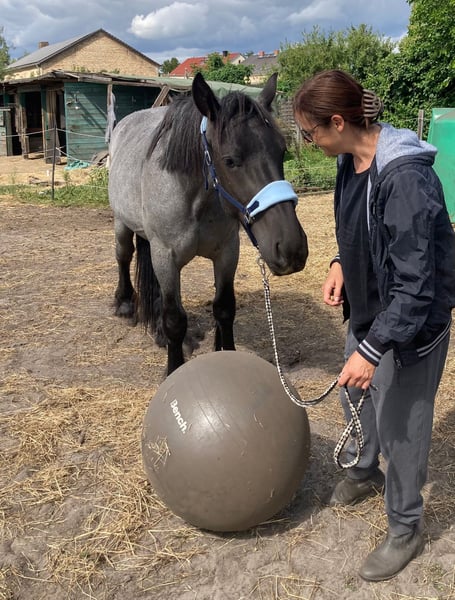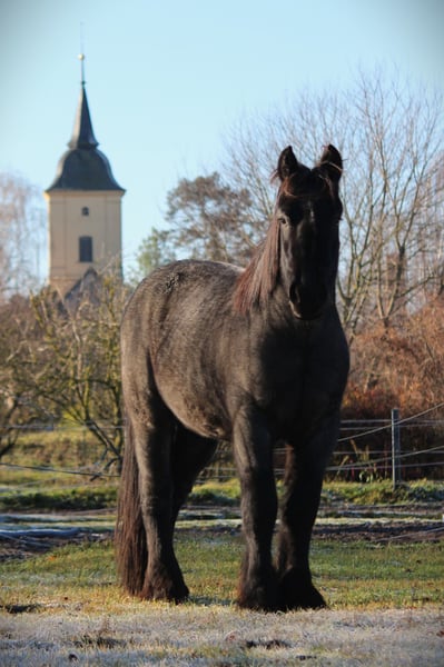 Jan ist ein intelligentes, feinfühliges Jungpferd, das seinem Menschen aufmerksam begegnet. Anfangs kann er vorsichtig sein, weiß aber liebevollen, gelassenen Umgang zu schätzen und sucht dann sanft die Nähe zum Menschen. Bei zu viel Druck weicht er eher aus – mit ruhiger, fairer Arbeit zeigt er sich motiviert und sehr lernfähig. Der Wallach ist dem Alter entsprechend gearbeitet. Er kennt Geländegänge (auch alleine), lässt sich gut verladen, ist anlongiert, durfte auch bereits die longierte Dual-Aktivierung sowie erste Zirkustricks kennenlernen. Küsschen gibt er gerne. Jan fällt sehr auf durch seine seltene Färbung. Er ist ein Blue Roan (auch als Rappschimmel bezeichnet) und wechselt zwischen den Jahreszeiten die Fellfarbe. Im Winter wirkt er fast schwarz, im Sommer färben sich Hals und Rumpf grau. Jans Mutter ist ein erfolgreiches Dressurpferd und läuft Dressurturniere in den Niederlanden. Sie konnte bereits Siege und Platzierungen bis zur Klasse M2 erzielen und war zudem einmal Allround-Champion auf nationaler Ebene. Auch frühere Nachkommen der Mutter sind sportlich erfolgreich. Der Vater ist Tejo van het Hermeshof, ein typvoller Vertreter seiner Rasse (weitere Infos zum Vater: https://www.hermeshof.be/en/tejo/). Geimpft, entwurmt. Zähne sind behandelt (Wolfszähne gezogen), außerdem osteopathisch behandelt.