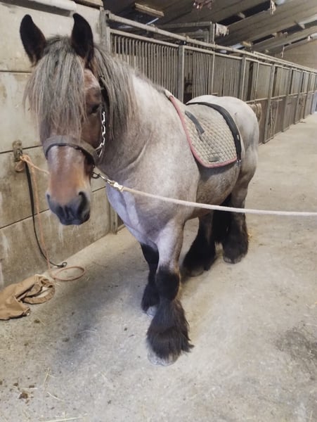 CHARMEUR VAN WAARDZICHT ( Eleveur DOMINIQUE VAN RIET) À vendre, magnifique cheval de trait , âgé de 4 ans. ( né le 23/03/21) Rouan. +/- 1.66m Tempérament : Il est calme, gentil et docile. C'est un compagnon idéal pour une famille ou une personne souhaitant un cheval fiable et sans surprise. Il est habitué au contact humain et facile à manipuler. Monte en van et camion. Aptitudes : Polyvalent et courageux, il excelle en disciplines spécifiques : attelage, débardage, traction agricole. Il a de l'expérience en : attelage en simple/paire, travail forestier léger, Il peut également être monté pour des promenades tranquilles. ( peur de rien : voitures, camions, etc… monté régulièrement par cavalière). Débourré chez M RIDELLE BERNARD (MARCHE) Débardage chez FARINA UGO ( France)+/- 1.5 mois Santé et entretien : À jour de ses vaccins, vermifuges et ferrages. Aucune maladie connue. Pas de pieds à jus. Vit au pré et box la nuit . Raison de la vente : manque de temps, changement de direction sportive . Profil recherché : Nous cherchons une bonne famille pour ce cheval, capable de lui offrir un foyer aimant et des conditions de vie optimales. Nous serons exigeants sur son futur environnement. Propriétaire : JENNIS PATRICK 0474 /430 845