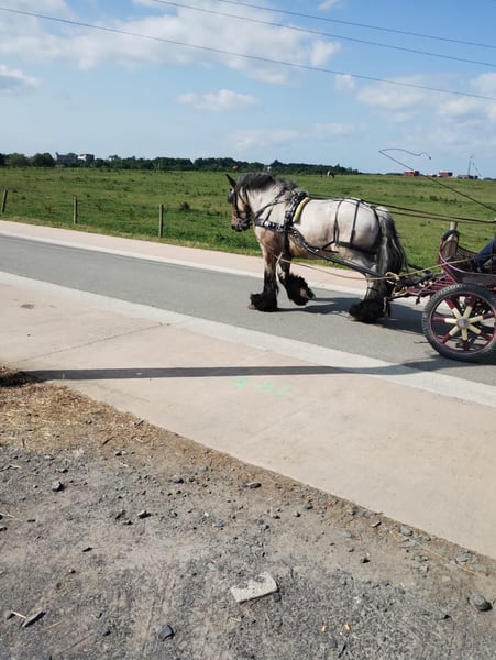 CHARMEUR VAN WAARDZICHT (Fokker DOMINIQUE VAN RIET) Te koop: prachtige trekpaard, 4 jaar oud (geboren op 23/03/2021). Roan kleur. Ongeveer 1,66 m Temperament: Hij is kalm, vriendelijk en zachtaardig. Een ideaal gezelschap voor een gezin of iemand die op zoek is naar een betrouwbaar en voorspelbaar paard. Hij is gewend aan menselijk contact en makkelijk te hanteren. Kan in een trailer of vrachtwagen geladen worden. Vaardigheden: veelzijdig en moedig, uitblinkt in specifieke disciplines zoals aanspanning, bosbouw, landbouwtractie. Heeft ervaring met enkel- en tandemspanning, lichte boswerkzaamheden. Kan ook bereden worden voor rustige ritten. (Geen angst voor auto's, vrachtwagens, etc... regelmatig bereden door een ruiter). Gereedgemaakt door M. RIDELLE BERNARD (MARCHE) Bosbouwwerk door FARINA UGO (Frankrijk) +/- 1,5 maand Gezondheid en verzorging: Vaccinaties, ontworming en hoefverzorging up-to-date. Geen bekende gezondheidsproblemen. Geen hoefproblemen. Pasture en 's nachts in de stal. Reden van verkoop: gebrek aan tijd, verandering in sportieve focus. Gewenst profiel: We zoeken een liefdevol gezin voor dit paard dat hem een warm thuis en optimale leefomstandigheden kan bieden. We stellen hoge eisen aan zijn toekomstige omgeving. Eigenaar: JENNIS PATRICK 0474 / 430 845