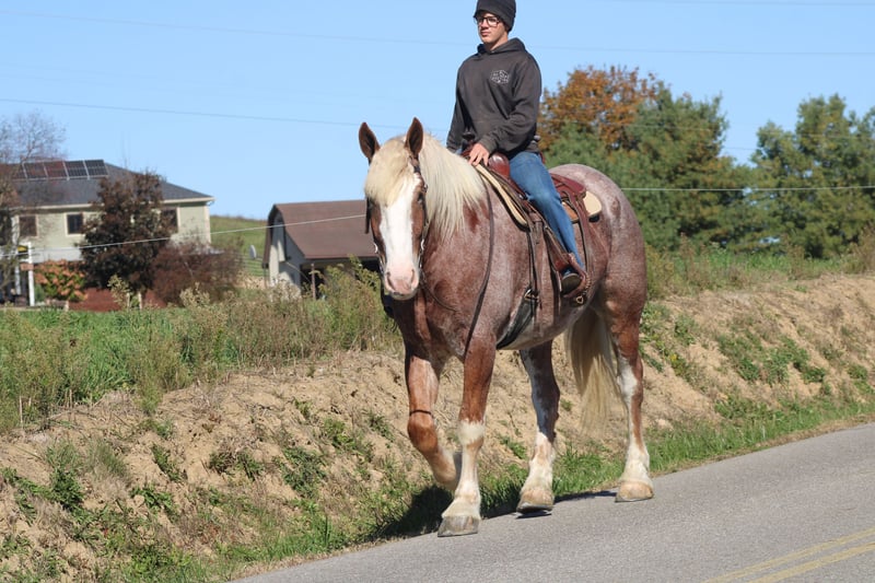 🎲𝓽𝓱𝓮 𝐑𝐈𝐃𝐄𝐑'𝐒 𝓒𝓱𝓸𝓲𝓬𝓮🎲 Happening now thru MONDAY | NOVEMBER 17th - Available EXCLUSIVELY on HorseBid's website! For more details and to register visit: www.Horsebid.com CONSIGNOR CONTACT: Hershberger's Farm 330-600-0197 LOCATION: Millersburg, Ohio BREED: Belgian X Quarter Horse REGISTERED: No REGISTERED NAME: Hershey's Chromer COLOR: Red Roan HEIGHT: 17 AGE: 4 GENDER: Gelding WOW WHAT A STAND OUT!!! Meet Hershey's Chromer!! He is a 4 year old draft cross gelding that is very pretty to look at. Chromer has been used for all types of jobs here on the farm. He has a very quiet temperament but is still very athaletic! He has been driven single a lot as well as double and has also been out in heavy traffic a lot and doesn't mind it at all. Chromer has been on countless trail rides and doesn't mind being ridden English or Western. He is totally beginner safe for anyone to ride or drive. Chromer picks up both leads and will easily step up and canter when he is asked to. He has a nice slow and smooth canter for a draft. Chromer was giving rides here on our farm this summer so he is used to getting lots of attention and he loves all of it!! He is very friendly with kids and also very gentle in the barn.. Chromer will walk up to you in the pasture. He stands nice for the farrier and loves getting a bath. Hershey's Chromer is very special and will always be the crowds favorite!!! If you would like to learn more about Hershey's Chromer call or text John @ 330-600-0197.