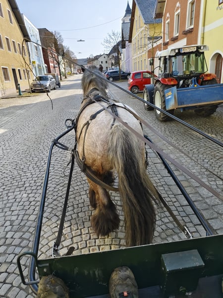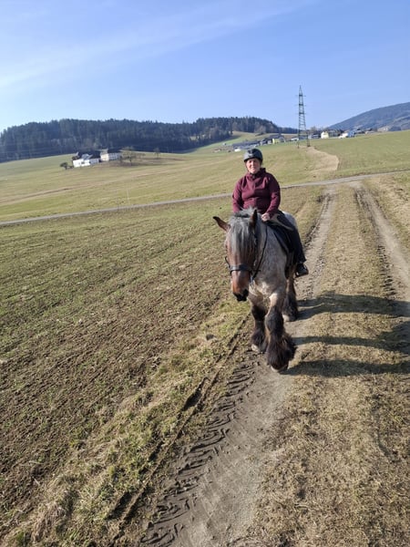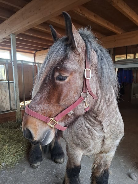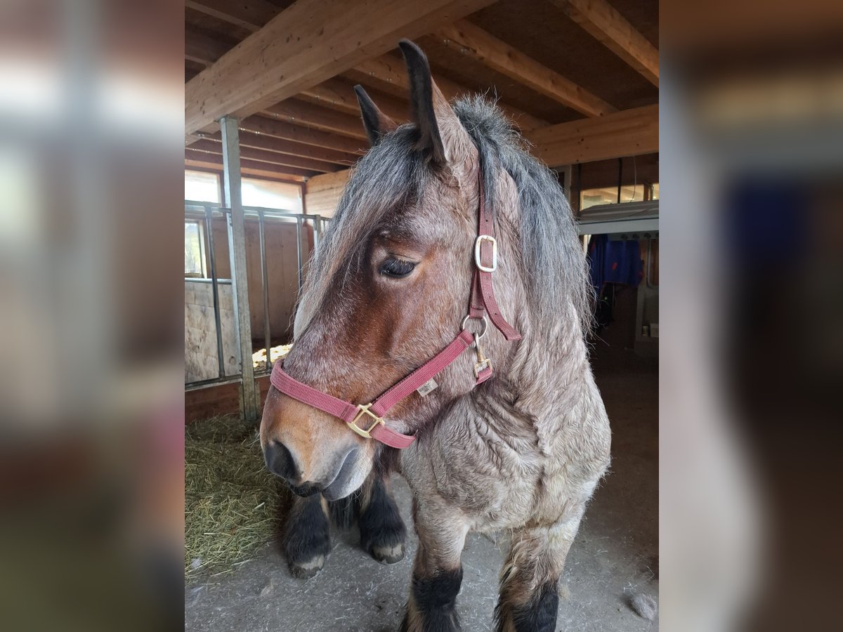 Belgisch Kaltblutwallach , 5 jährig , Braunschimmel, sehr gut ein- und zweispännig gefahren , ist dabei tüchtig aber nicht übereilig, wenig geritten, absolut verkehrssicher, wird bereits als Verlasspferd bei der Ausbilldung anderer Pferde verwendet, kennt Landmaschinen, Verkehr, Hunde, Kinder, Horsemanship/ RoundPen