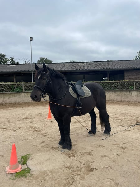 Max is a 9-year-old Belgian Draft gelding (approximately 16.1 hh, weighing around 1,870 lbs) — a real eye-catcher with an impressive presence and a heart of gold. He is well-started under saddle, has excellent ground work skills, and performs calmness training with ease. Lunging from the ground is no problem for him either, making Max an ideal candidate as a leisure riding horse or even as a logging horse. Max has a sensitive nature and needs a confident, calm handler who can provide him with trust and guidance. Although he appears strong, he is more of a cautious type who tends to seek retreat in uncertain situations. He has never shown any malice — he simply needs someone to give him security and lead him gently. He is currently ridden but not regularly, so a trial ride is only possible under certain conditions. In the herd, Max is social, playful, and friendly — he loves to frolic with his companions, and we are looking for a suitable equine friend for him in his new home. He has previously been kept with geldings; we cannot comment on his compatibility with mares. Health-wise, Max tests positive for PSSM1 and has a papilloma (wart) on his neck, which is typical for draft horses but currently not severe. Both conditions can be well managed with proper care and feeding. A recent full blood panel was performed, with no abnormalities detected. For Max, the saying “location before price” definitely applies! He is looking for a home where his sensitive soul is recognized, where he can feel secure, and where his gentle nature is appreciated. Max is located in Krefeld-Forstwald. I am happy to send additional photos and videos upon request. ❤️