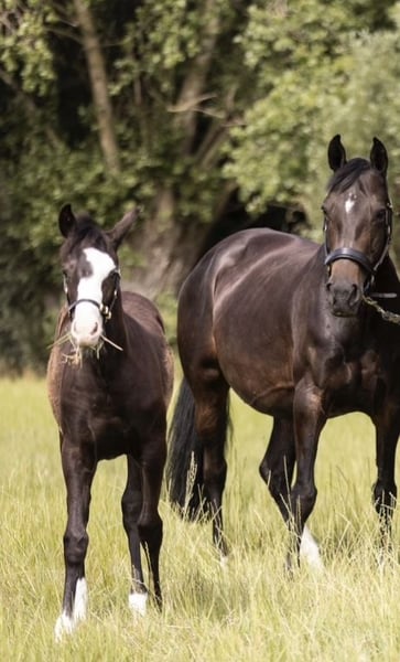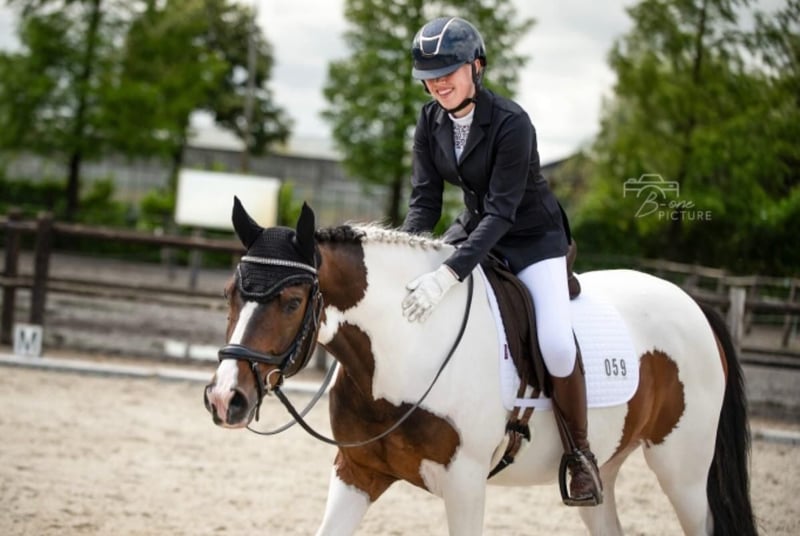 A lovely family pony (by Voltaire) seeking a 5-star 🏡. She is 16 years old. She joined us as a yearling. At 3 years old, she was approved by RX 🩻✅. She was saddle-trained at 4 years old. Since then, I have competed with her in show jumping. She jumps very consistently, with many placements in 90/1m classes 🏅. She has also competed in courses up to 1.15m among other horses, due to my age, but you can notice that the distances in double combinations can be a bit more challenging. (Oxer to vertical was no problem, vertical to oxer was more difficult). She is very reliable and never takes a wrong step. She is also 100% traffic-safe. Going for walks (forest, beach, road) she loves! 🤩 She fully adapts to her rider. A nervous rider gains her confidence, while a competition rider can count on her energy to win. She has no issues with clipping or transport. She has given us three foals, the youngest of which will arrive in 2026. She passes on her character and ability to her offspring. The oldest foal has been sold to the Netherlands. We still have the 2nd and 3rd foal in our possession (see last photos). She is located in Belgium 🇧🇪.