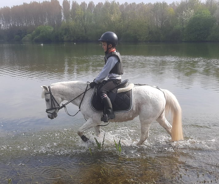 Unsere zuckersüße Creamy sucht einen neuen kleinen Reiter. Sie ist das, was man unter einem perfekten Kinderpony versteht: ein Kind kann sie komplett alleine fertig machen, sie erschrickt nicht, glotzt nicht, hat absolut keine Unarten. Sie ist ein kleiner Springflummy und stoppt NIE. Der beste confidence giver für Kinder. Ein richtiges Schoolmaster Pony. Sie ist 23, 127cm groß und ein absoluter Engel. Ein fittes kleines Traumpony, das Kinder sicher an Turnieren durch den Parcours trägt und immer die Ziellinie erreicht. Immer lieb, immer brav. Wir müssen uns leider trennen, weil sie auf unsere Stroh-Einstreu mit Husten reagiert und wir das leider nicht ändern können. Gegen leichtes Cushing bekommt sie jeden Tag eine Tablette und hat damit überhaupt keine Probleme.
