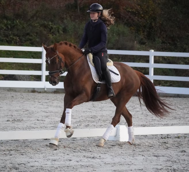 On behalf of the client – the horse is not located with us but in 92348 Berg Utopia is an SBS – Belgian Sport Horse mare, born in 2020, approximately 16.1–16.2 hh, sired by First Step Valentin out of Vitalis, Vivaldi, Florestan, Ferro. *Utopia* is a stunning and very cool mare with excellent movements. She has completed dressage training up to Level A, moves beautifully in the arena, and is very relaxed and confident. She is rideable, not hot-tempered, and a true pleasure to handle. She is suitable for riding, remains calm in the terrain alone or in a group, and is very brave and resilient. She also jumps politely over logs. An all-rounder for sport and leisure, she handles traffic, noise, tarps, and more with complete ease! BE SURE TO WATCH HER VIDEO! She is very affectionate and gentle in handling. She already has a comprehensive health certificate. This picture-perfect horse should not be missed. On behalf of the client, due to time constraints. The horse is not located with us but in 92348 Berg. A current video can be found in the listing or at the following link: https://www.youtube.com/watch?v=0MCMNQpEuik Horse Dealership Dederichs – Your Partner for Horse Buying Contact & Availability: Inquiries please exclusively by phone at 0173/9792139 Monday – Friday: 09:00 AM – 6:00 PM Saturday: 09:00 AM – 3:00 PM Sunday: Closed Follow us on social media! Experience our daily life with the sale horses on Instagram, TikTok & Facebook at Pferdehandlung Dederichs Trial riding & viewing: • Trial ride: €40 • Holidays: Trial ride €50 • Demonstration by a trainer: €30 (ground work, riding, etc.) • We also gladly assist with transport to your new home. • Descriptions are subjective assessments by the seller and do not constitute guaranteed properties.