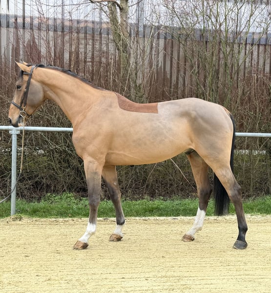 This impressive gelding impresses with his exceptional jumping ability. He easily navigates courses up to 1.40 m and consistently provides an incredible sense of safety and confidence. His charismatic personality and high jumping talent make him an ideal partner for both professionals and amateurs. He is especially suitable for ambitious show jumpers seeking to advance into the sport. In training, he has shown excellent results and impressed during evaluation training with his calmness and composure. He is also a pleasure to ride in dressage. We are looking for supportive hands to help develop his full potential. With a height of approximately 1.70 m (16.1 hh), he is also the perfect partner for male riders. His promising pedigree indicates significant potential for the future. 🎉 **Special Offer:** Immediate purchase entitles you to a **5% discount** on the sale price! 🎉 ✨ **Test Ride:** Take the opportunity to test our horse for one week! This trial period can be accompanied by our experienced trainers, allowing you to combine lessons and testing. Please note that a trial fee applies, which is not deducted from the purchase price. 🐴 **Viewing and Trial Riding:** Feel free to visit us and see the horse in person! The cost for a pre-ride or trial ride is **€30 per person**. We look forward to your visit and the chance to introduce you to this wonderful horse! 💖