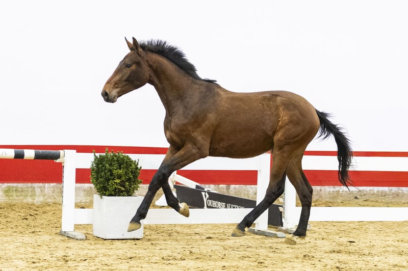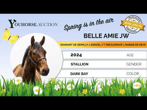 Only two years old. At this age he should have jumped a single fence, yet due to circumstances he already jumped a full line. That says everything about his mindset and natural ability. He immediately stands out with his excellent front-end technique – not often seen in a Diamant de Semilly, and with that line you never have to question the scope. He jumps with strong push-off, shows a big canter and carries refined blood. Modern, athletic and naturally balanced. A young horse with presence and quality. Sire Diamant de Semilly (1.60m Grand Prix) is one of the most influential stallions worldwide. He produced countless 1.60m–1.70m horses such as Dominator 2000 Z (1.70m), Arioto du Gevres (1.70m) and Mumbai (1.70m). Approved in Holstein, BWP, Zangersheide, SF and others, he consistently passes on scope and toughness. Dam Jessy Belle de Muze (by Denzel v’t Meulenhof 1.40m) descends from the world-famous Belle van Sombeke family. Granddam Dabelle (by Nabab de Rêve) competed at 1.60m level with CSI5* placings in Stuttgart and Stockholm. Third dam Ta Belle van Sombeke (by Chin Chin) also competed at 1.60m level. From this direct line come outstanding international performers: Beau de Laubry Z (1.65m CSI5* winner), Colibelle Hero Z (1.60m), Dragibus d’Ick (1.55m), Extra Belle d’Ick (1.55m), Golden Hawk (1.60m CSI4* winner), Glock’s London (1.60m), Mom’s Oak Grove’s Heartfelt (1.60m), Arac du Seigneur (1.60m), Mom’s VDL Groep Eureka (1.60m), Quabelle (1.60m) and Ratina Kervéc (1.60m). Alongside numerous 1.40m–1.50m horses and several approved stallions. A damline that consistently produces at the highest level. This is not just a family. This is a Grand Prix family.