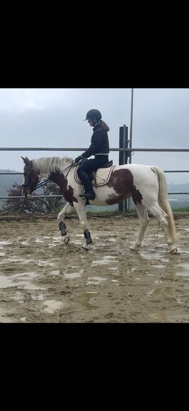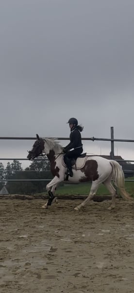 Jeanine is looking for her patient, empathetic soulmate. The 6-year-old, sensitive mare needs a partner who can provide her with security and trust, so she is not suitable for beginners. She has beautiful basic gaits, is pleasant to ride, and shows great motivation when jumping and during pole exercises. This is a horse that would certainly benefit from further development by an ambitious leisure rider. She goes well in pairs out on trails and is traffic-safe. Very herd-compatible. She is familiar with the farrier, but still requires calm support. Regularly vaccinated and had her teeth done. She is being sold because her temperament does not quite fit into the riding school environment, and she needs her "own" person.