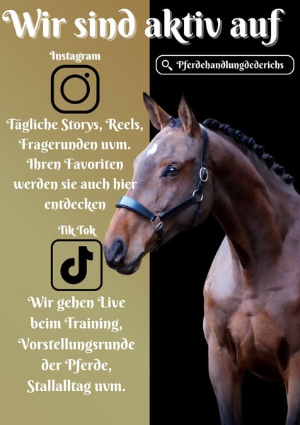 Summer ist eine 2019 geborene Belgische Warmblut Stute ca. 170 cm v. Important Style VK, Falaise de Muze, Landor S, Calvino Z x Cantact vd Heffinck, Quintus *Summer* ist eine absolut liebe und coole Stute die jedem ein sicheres Gefühl gibt. Summer geht brav mit Anfängern, Kindern und ängstlichen Reitern. Sie ist bisher Freizeitmäßig geritten und bringt aber auch genügend Qualität für den Sport mit. Wir können uns sie aber auch als Schul/-Lehrpferd oder auch für Therapie vorstellen. Summer ist ruhig, unerschrocken und super cool. Im Gelände ob alleine oder in der Gruppe schön zu reiten. Im Umgang unkompliziert, verschmust. Summer ist ein super ehrliches Pferd mit einem ganz tollen Charakter. Sie bringt bereits eine große aktuelle AKU mit. Pferdehandlung Dederichs – Ihr Partner für den Pferdekauf Kontakt & Erreichbarkeit: Anfragen bitte ausschließlich telefonisch unter 0173/9792139 Montag – Freitag: 09:00 – 18:00 Uhr Samstag: 09:00 – 15:00 Uhr Sonntag: Ruhetag Folgen Sie uns auf Social Media! Erleben Sie unseren Alltag mit den Verkaufspferden auf Instagram, TikTok & Facebook unter Pferdehandlung Dederichs Rabatt: Bei sofortiger Mitnahme Ihres neuen Traumpferdes erhalten Sie zwischen 5 %– 10 % Rabatt Probereiten & Vorführen: • Probereiten: 30 € pro Pferd (max. 2 Reiter), Betrag wird beim Kauf angerechnet • Feiertage: Proberitt 50 € • Vorführung durch unsere Bereiter: 25 € pro Pferd (Vorreiten, Bodenarbeit etc.) Ankaufsuntersuchung & Transport: • Viele unserer Pferde besitzen bereits eine AKU • Sie können selbstverständlich Ihren eigenen Tierarzt mitbringen • Gerne organisieren wir eine Untersuchung • Wir unterstützen Sie auch gerne beim Transport ins neue Zuhause Weitere Verkaufspferde: In unserem Stall stehen weitere Verkaufspferde, die noch nicht online sind. Falls Ihr Traumpferd noch nicht dabei ist, zögern Sie nicht, uns zu kontaktieren. Wichtige Hinweise: • Stockmaß-Angaben sind geschätzt und nicht exakt nachgemessen • Alle Beschreibungen sind subjektive Einschätzungen des Verkäufers und keine zugesicherten Eigenschaften Weitere Informationen finden Sie unter: www.Pferdehandlung-Dederichs.de