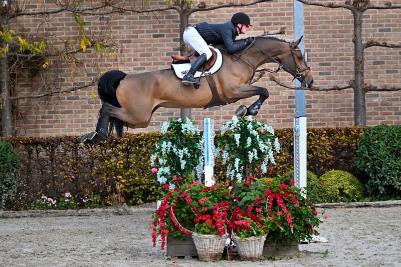 Dieses siebenjährige braune Stutfohlen ist eine direkte Tochter von Toulon, einem weltweit bekannten Hengst, der für seine Nachkommen mit großem Sprungvermögen, ausgeprägtem Temperament und herausragender Athletik berühmt ist. Im Pedigree der Mutterlinie finden sich beeindruckende, bewährte Hengste wie Clarimo ASK, Chin Chin, Corrado und Lord. Es ist daher keine Überraschung, dass diese Familie bereits mehrere Pferde hervorgebracht hat, die auf 1,50 m und höher erfolgreich sind. Chakira spiegelt diese starken Blutlinien auf wunderschöne Weise wider. Unter dem Sattel ist sie außergewöhnlich leicht zu reiten: leicht in der Hand, aufmerksam auf die Hilfen und mühelos in der Ausführung korrekter fliegender Wechsel. Dank ihres natürlichen Gleichgewichts, ihres geschmeidigen Galopps und ihrer kooperativen Art vermittelt sie dem Reiter sofort Vertrauen — sogar weniger erfahrenen Reitern. Im Parcours zeigt sie ihr volles Potenzial. Sie denkt mit ihrem Reiter mit, bleibt auf natürliche Weise vorwärts, ohne stark zu werden, und springt mit einer zuverlässigen, gleichmäßigen Technik. Ihre Sorgfalt und ihr Bewusstsein machen jede Runde reibungslos, kontrolliert und angenehm. Mit ihrer vernünftigen Art, ihrem Talent und ihrer benutzerfreundlichen Reitbarkeit ist Chakira eine ausgezeichnete Wahl für einen ambitionierten Amateur oder einen jungen Reiter, der mit Selbstvertrauen Fortschritte machen möchte. Sie bereitet Freude im täglichen Training, gibt Sicherheit im Parcours und bietet vielversprechendes Potenzial für die Zukunft. Bei direktem Export in Nicht-EU-Länder ist die Mehrwertsteuer nicht mehr zu zahlen (21 % entfallen auf 0 %). Falls der Export verzögert wird (aber so bald wie möglich erfolgt), wird die Mehrwertsteuer erstattet, sobald wir die offiziellen Exportdokumente (erstellt durch den Zoll) erhalten haben.