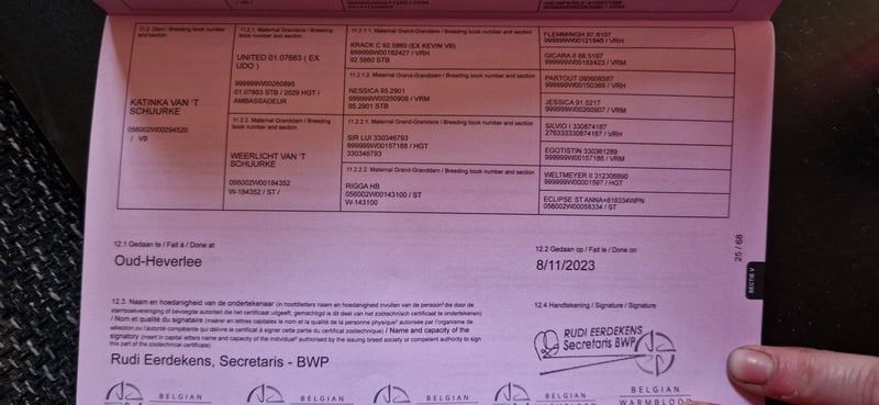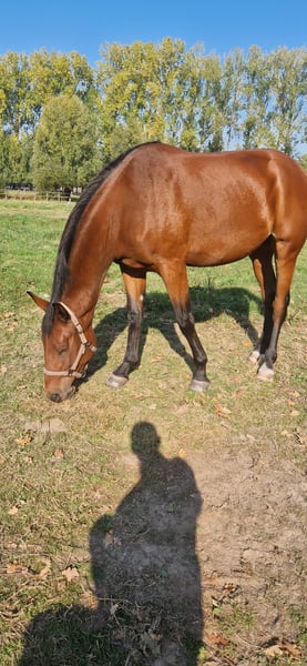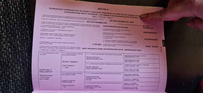 Adaro-Moose Van De Heide Nickname: Adaro BWP passport Microchipped Up to date with vaccinations, deworming, and farrier Adaro has very beautiful movements and is eager to work for you; by this, I mean for his 2-year-old age, exercises such as walking, halting, backing up, placing a saddle pad on his back, a lunge girth, bridle with bit, etc. He has participated in fairs, inspections, and performance days. He was born in the pasture but has spent 2 times 3 months in stabling, first as a stallion and then as a gelding, with mares passing by daily. He is familiar with the wash box, grooming, walking mill, free in the lunge pen, and free in the indoor arena, and has also made some jumps over a 60 cm pole. He is bred for dressage and has show jumping bloodlines. Adaro is well-mannered. He is familiar with transport in a van and trailer. Directly from breeder and owner. Located in Belgium, province of Antwerp, Puurs/Liezele. Feel free to send a WhatsApp: 0497046204